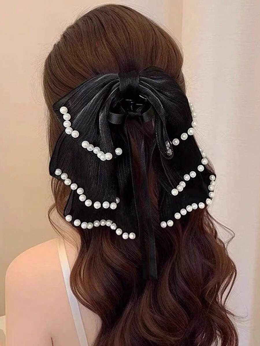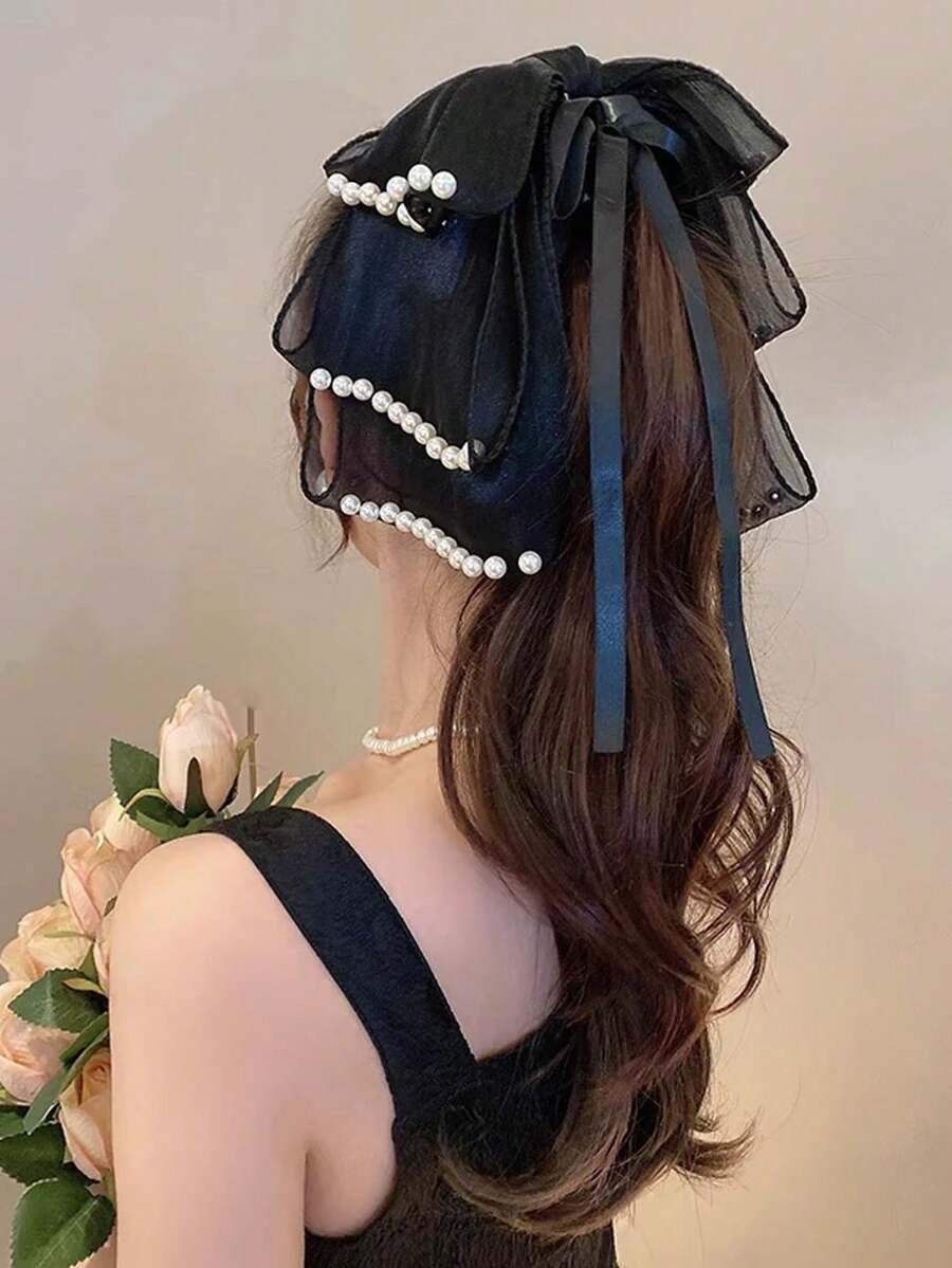 SHEIN مشبك شعر أنثوي وناعم بشكل فراشة مزين بشرائط خفيفة ولمسة لؤلؤ