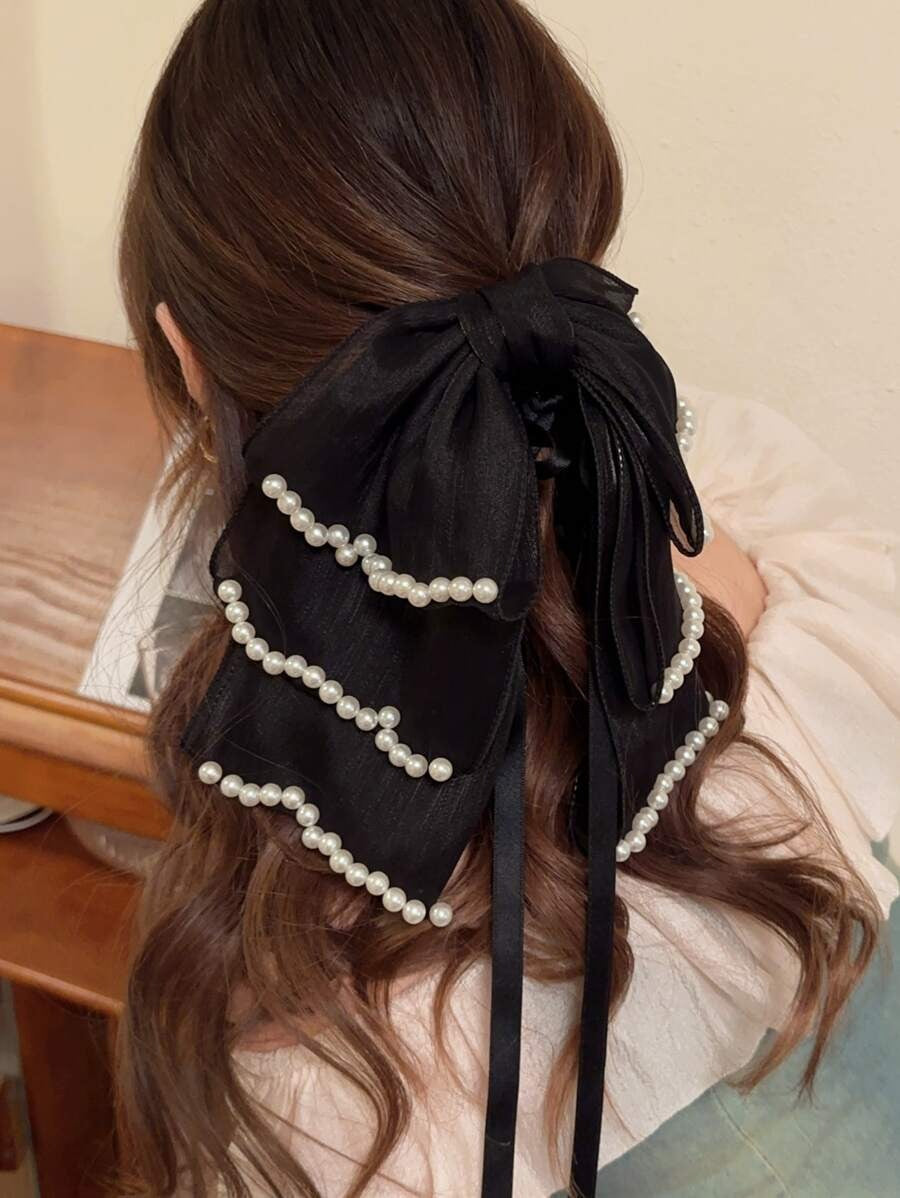 SHEIN مشبك شعر بفيونكة شريطية مع لؤلؤ