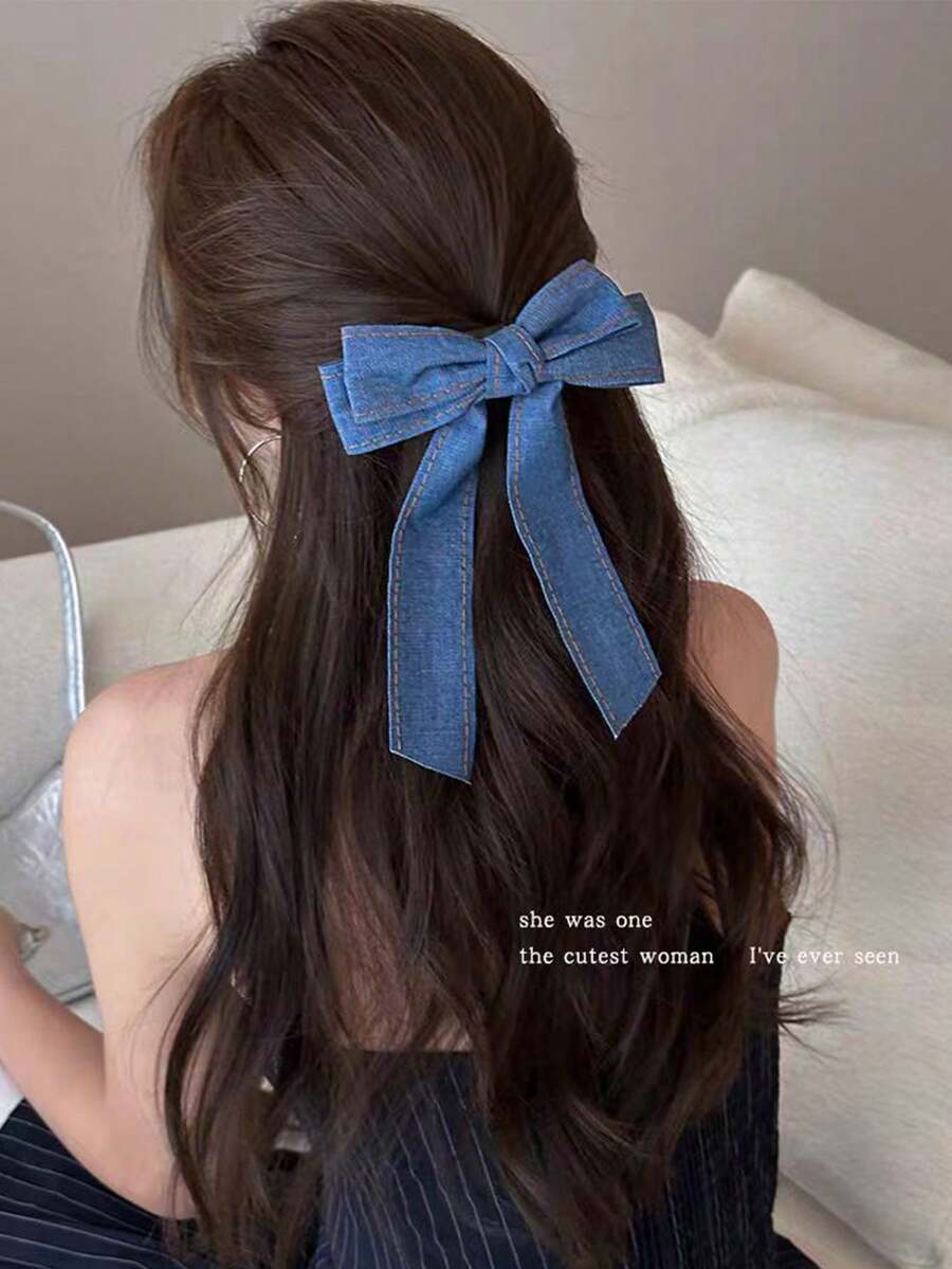 SHEIN مشبك شعر كبير من الجينز بشكل فيونكة