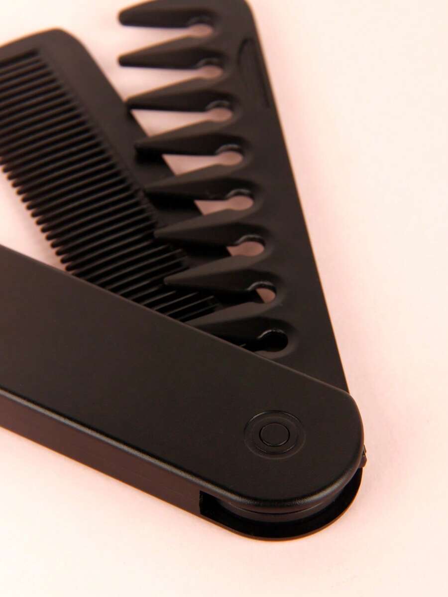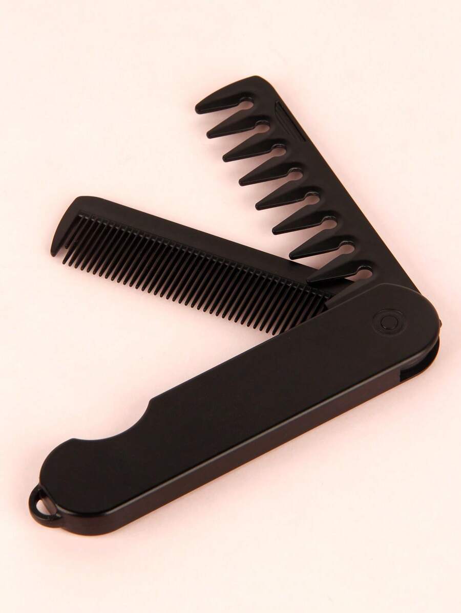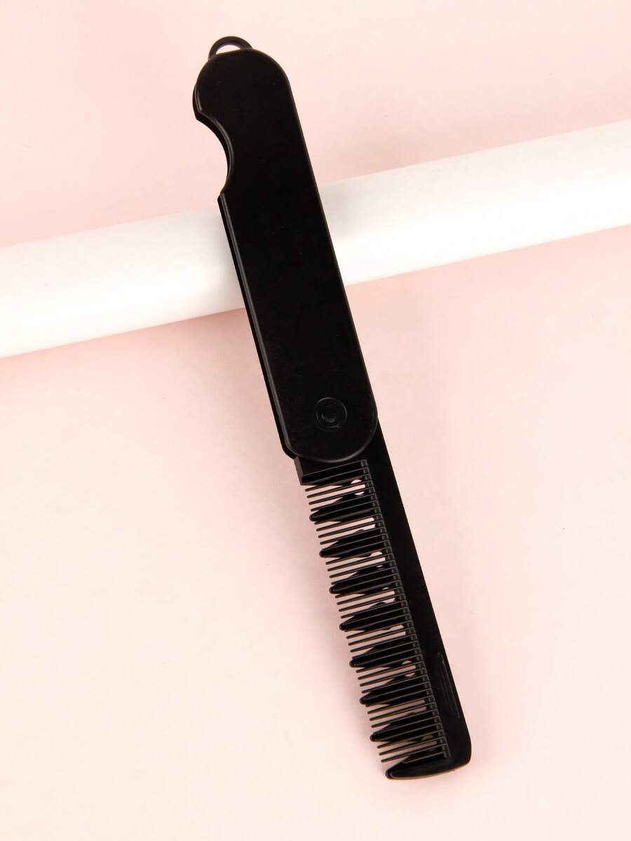 SHEIN مشط مزدوج الأسنان قابل للحمل باللون الأسود لتصفيف الشعر واللحية