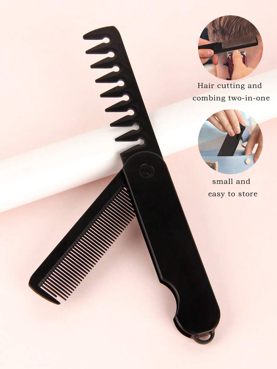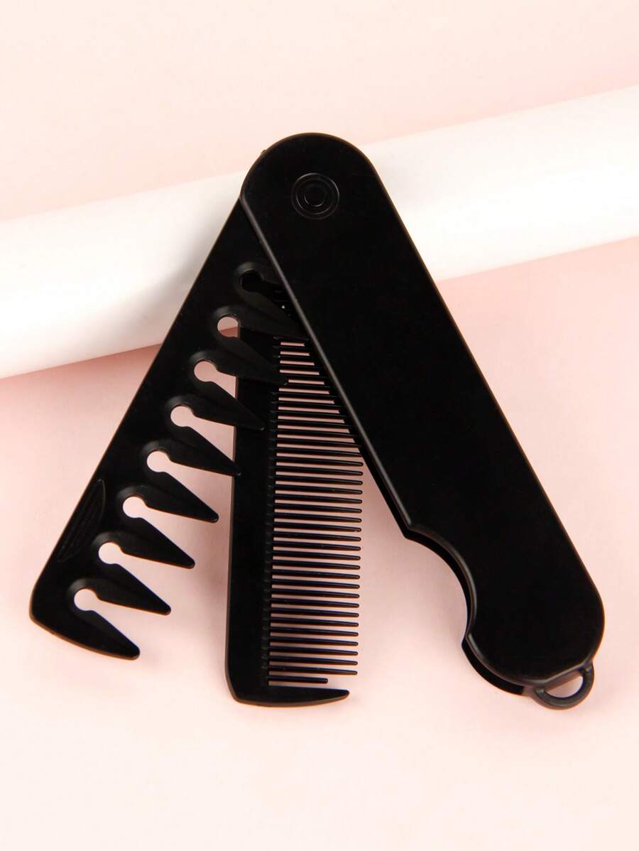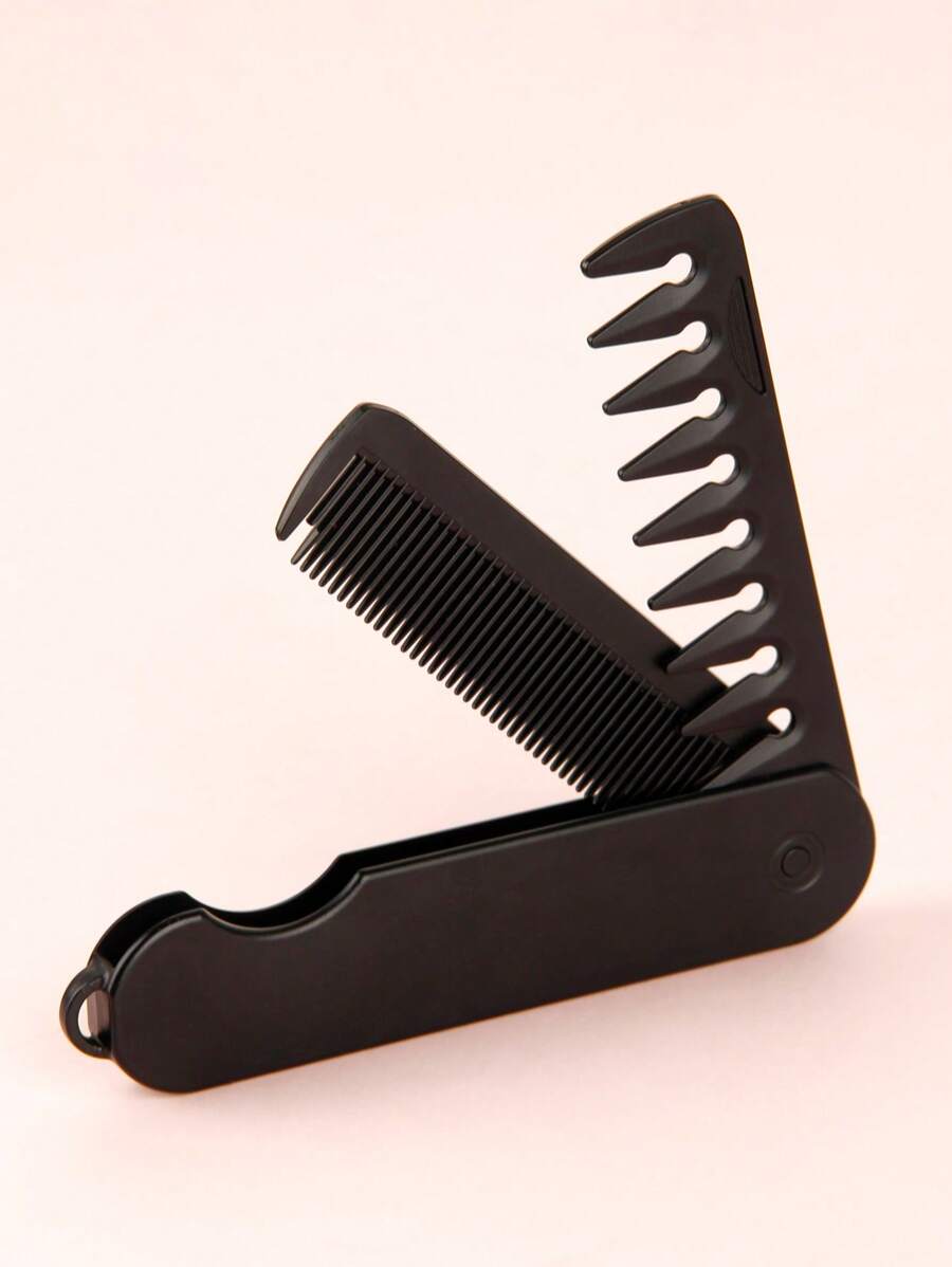 SHEIN مشط مزدوج الأسنان قابل للحمل باللون الأسود لتصفيف الشعر واللحية