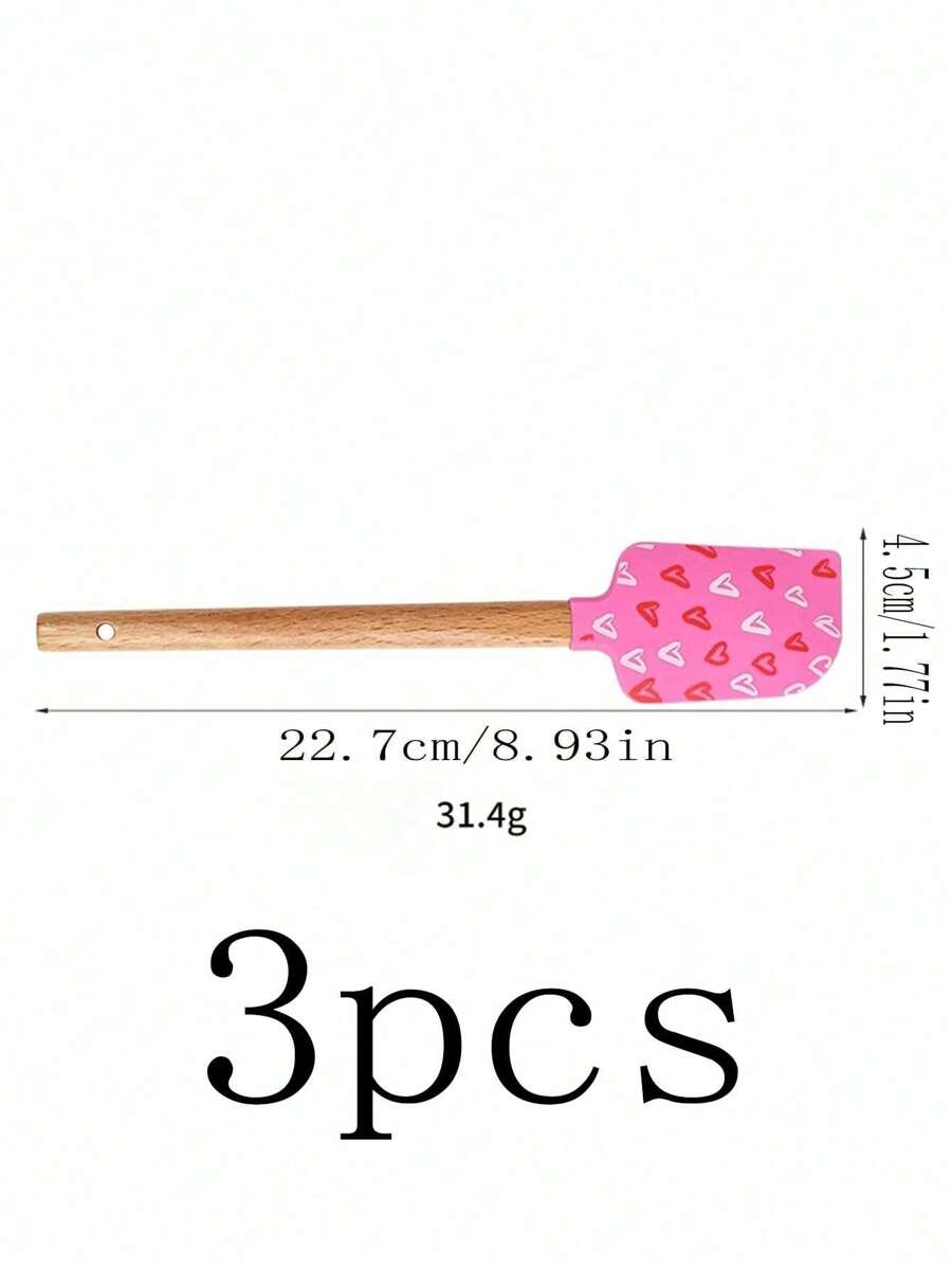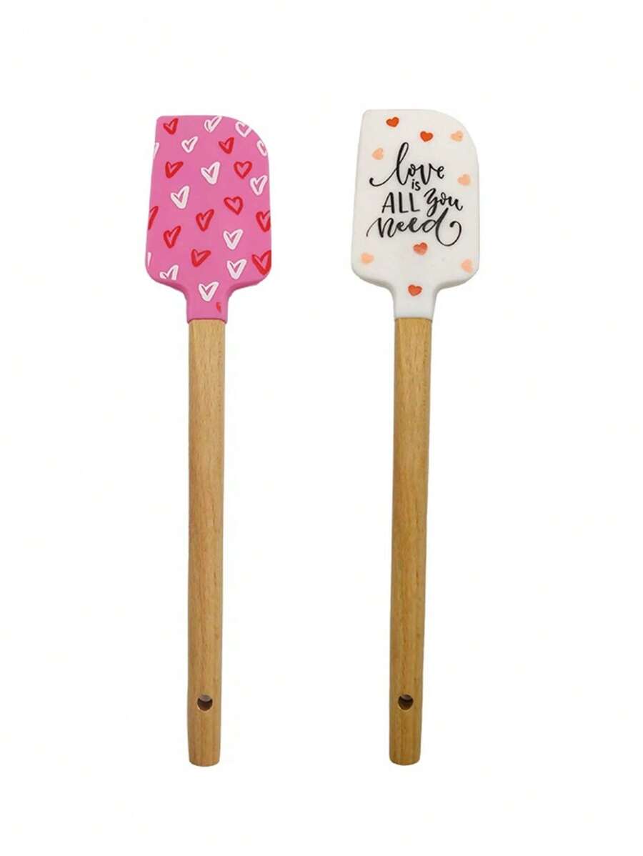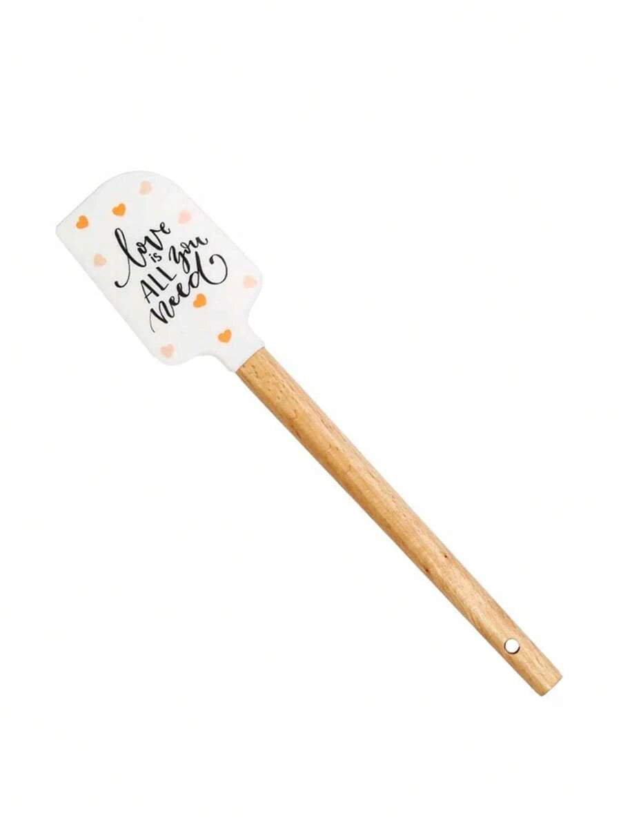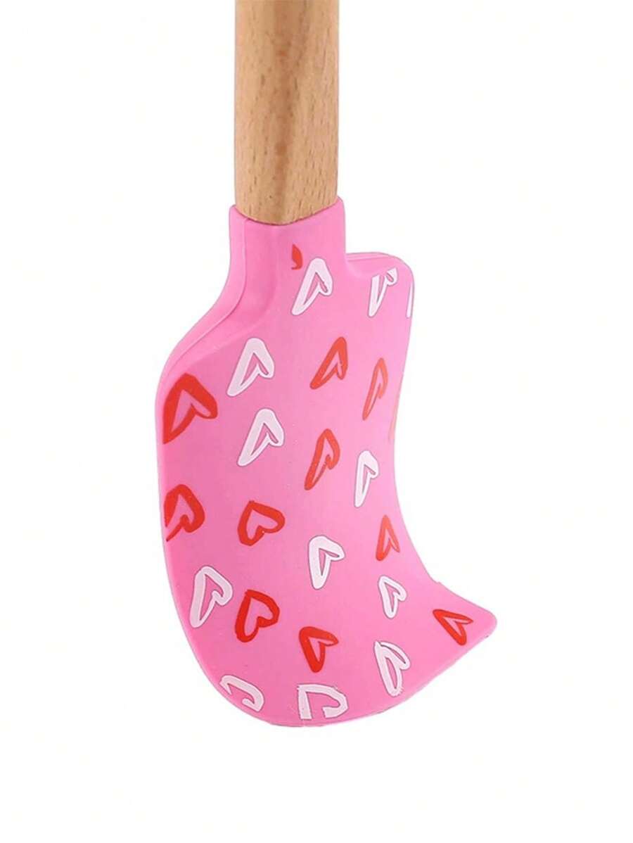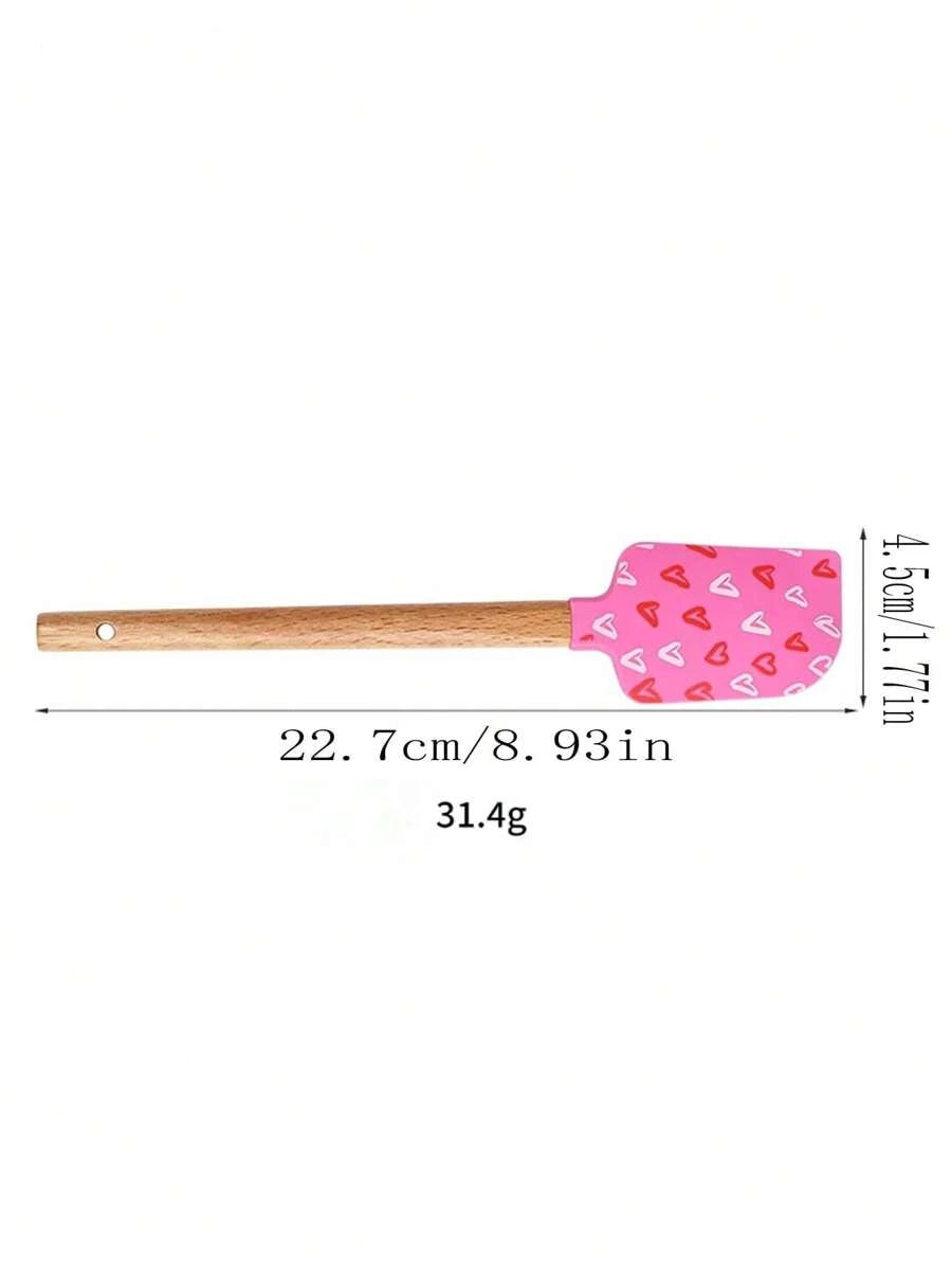 ❤️🥄 ملعقة خلط سيليكون بمقبض خشبي بتصميم عيد الحب
