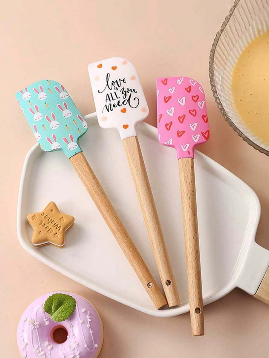 SHEIN ملعقة خلط سيليكون خشب مقاومة للحرارة