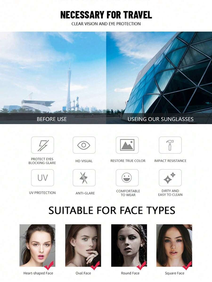 لو بتحبي النظارات الكبيرة اللي بتدي لوك جريء وأنيق في نفس الوقت، النظارة دي هتعجبك! شكل مربع، تصميم كلاسيكي، ومناسبة للسفر، الشاطئ، أو حتى اللوك اليومي.