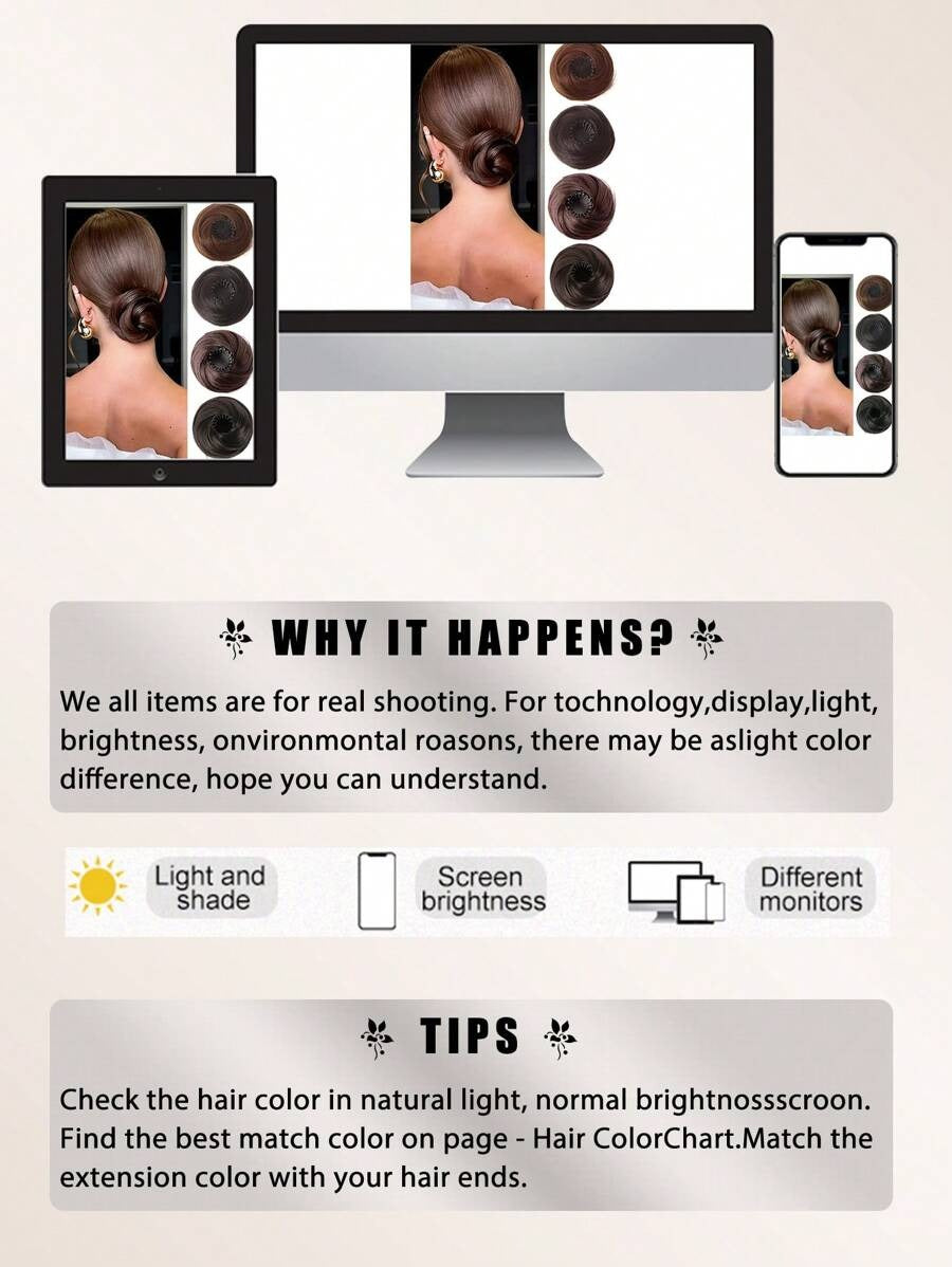 إضافة شعر أنيقة وخفيفة، تتثبت بسهولة في مؤخرة الراس عن طريق مشابك، تعطي كثافة طبيعية ولمسة ناعمة. مصنوعة من ألياف مقاومة للحرارة وتتحمل حتى 150 درجة. طولها حوالي 10 سم، مناسبة لجميع أنواع الشعر وللاستخدام اليومي أو كإكسسوار بسيط للحفلات 🎀