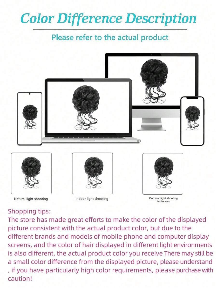إكسسوار شعر عملي لتصفيف الكعكة، يجي بخصلات مجعدة ناعمة بستايل منسدل أو مالس، يعطي كثافة طبيعية ومظهر أنيق. يركب بسهولة بمشبك خلفي ويناسب كل أشكال الرأس. لون أسود طبيعي، والخامة ناعمة بملمس حريري مطفي وتتحمل الحرارة.
