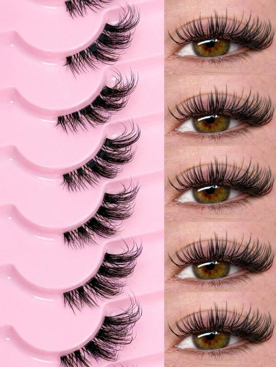 9 أزواج رموش نصفية ستايل عين القطة – طبيعية وخفيفة ✨