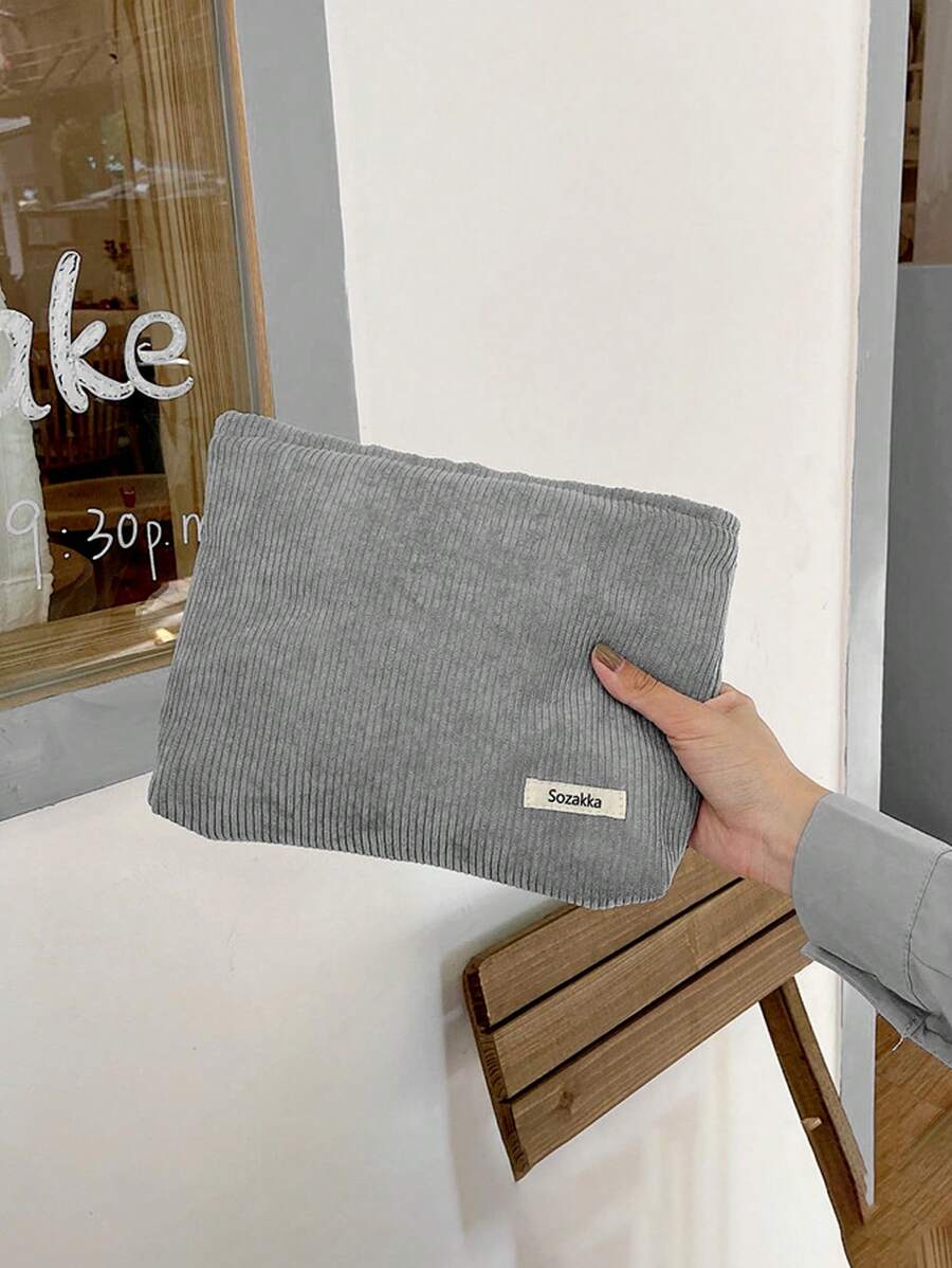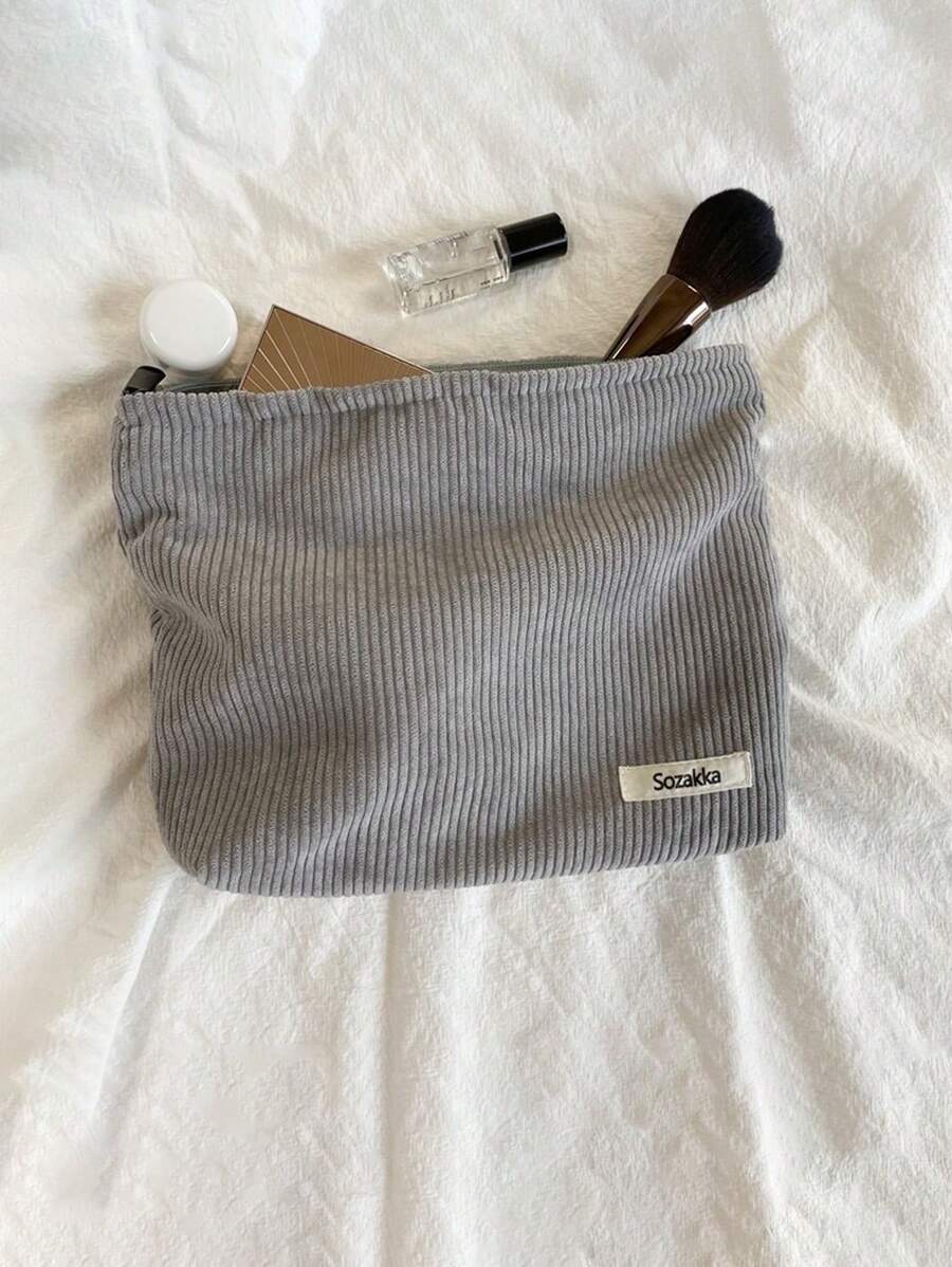 SHEIN حقيبة مكياج رمادية مبطنة بسحاب، مناسبة للسفر والمستحضرات الجمالية، منظم عملي للتخزين والهدايا.