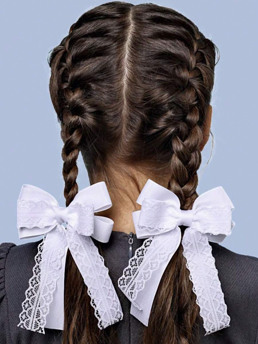 طقم ربطات شعر دانتيل بيضاء بتصميم فيونكة (قطعتان) 🎀✨