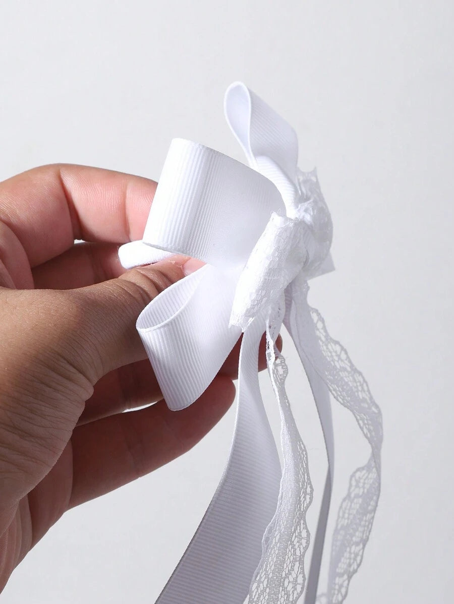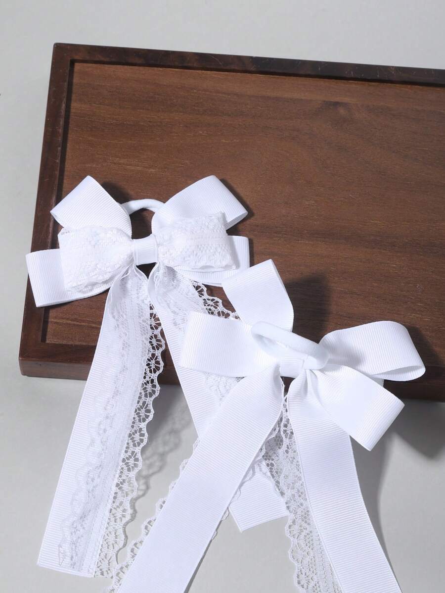 SHEIN طقم ربطات شعر دانتيل بيضاء بتصميم فيونكة
