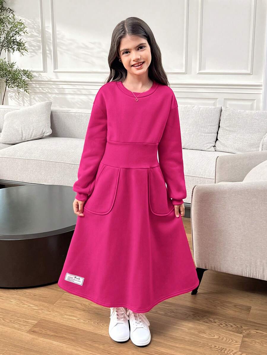 SHEIN فستان بلوزة رياضية فضفاضة على شكل حرف A مع خصر مكدس للبنات المراهقات ، نمط عارض مع ياقة مستديرة