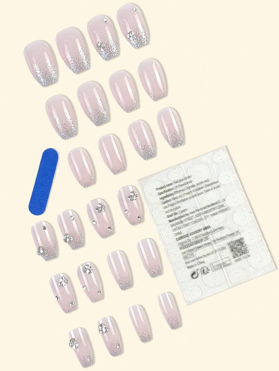 SHEIN مجموعة أظافر متوسطة الى طويلة مكونة من 24 قطعة