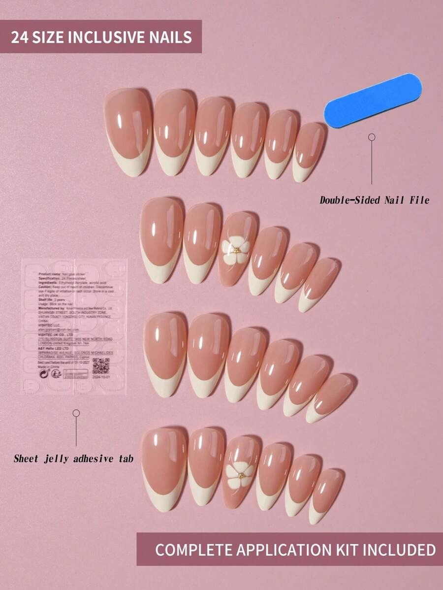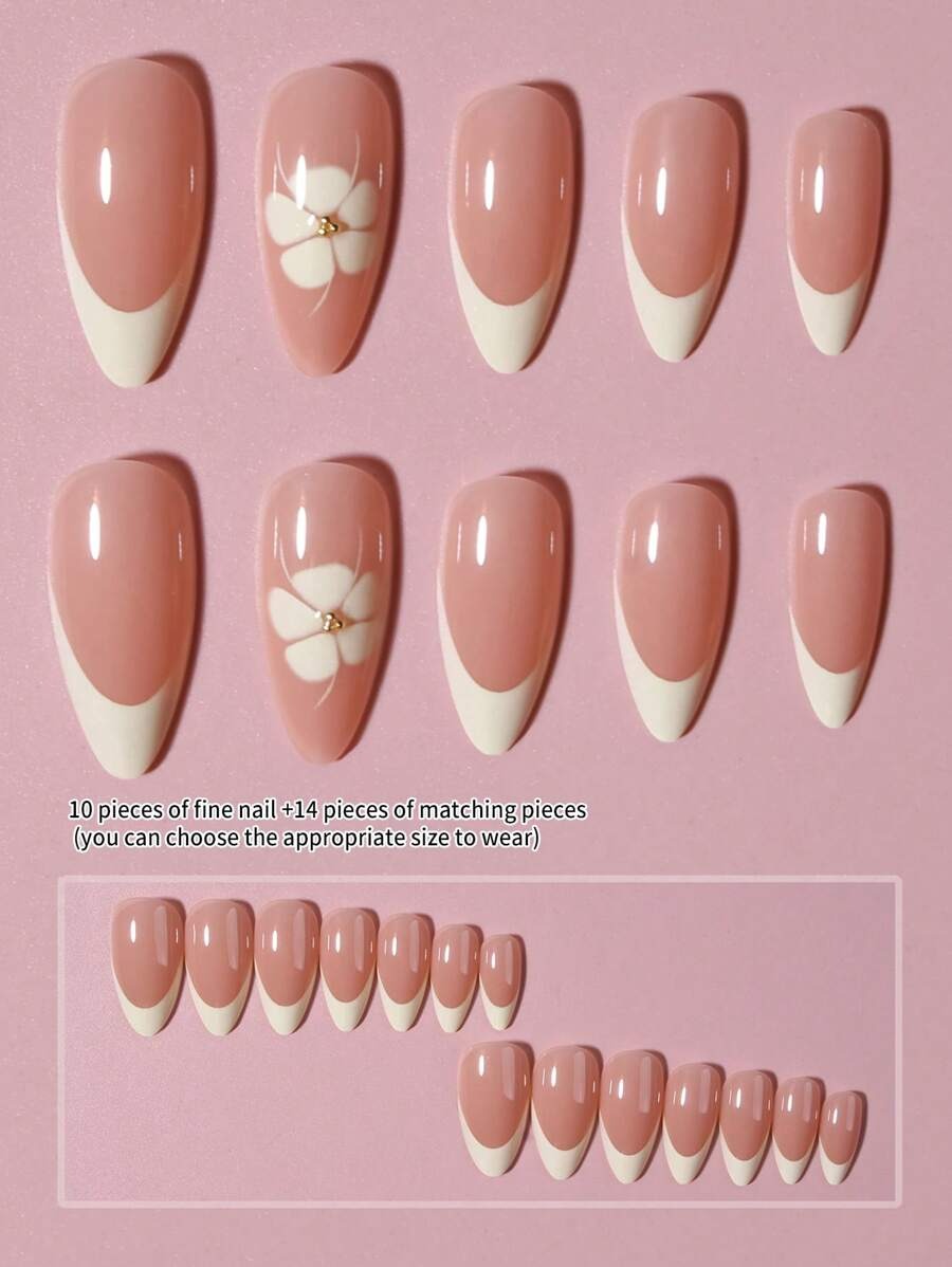 SHEIN مجموعة 24 قطعة أظافر فرنسية شكل لوز