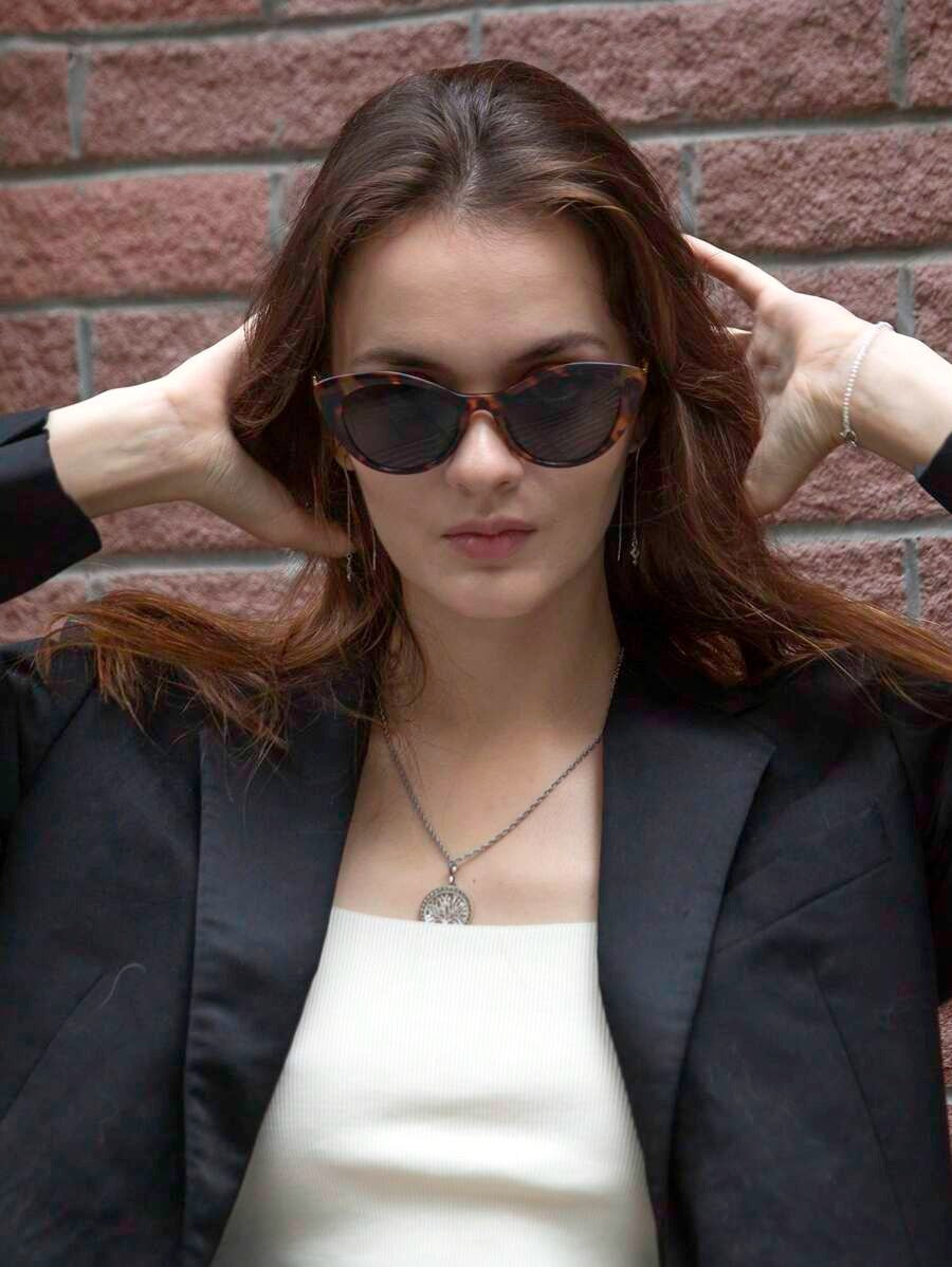 SHEIN نضارة عين قط أنيقة بحرف ديزاين لون نمر بني
