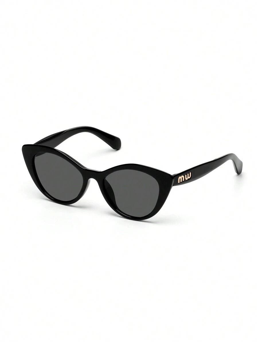 نضارة نسائية فاخرة بتصميم عين القطة ولمسة أنيقة من حروف العلامة على الجوانب، لون الإطار أسود وعدساتها متناسقة. شكلها ملفت ومميز.