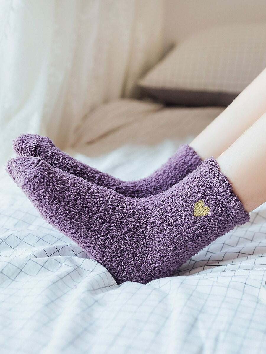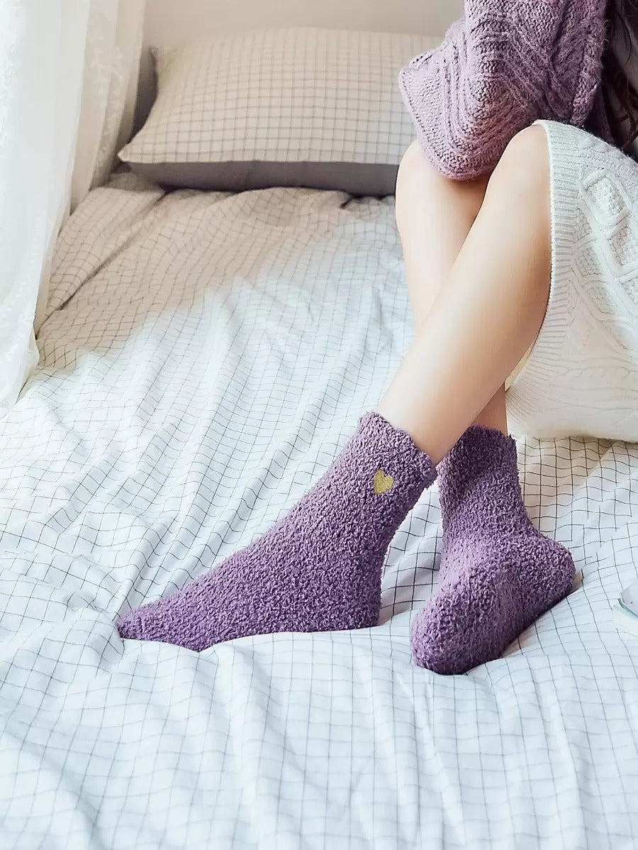 جوارب شتوية ناعمة وسميكة، تصميمها بطول طاقم وفيها طبعة قلب تضيف لمسة ناعمة وأنثوية. الخامة دافئة ومريحة، مثالية لأيام البرد.