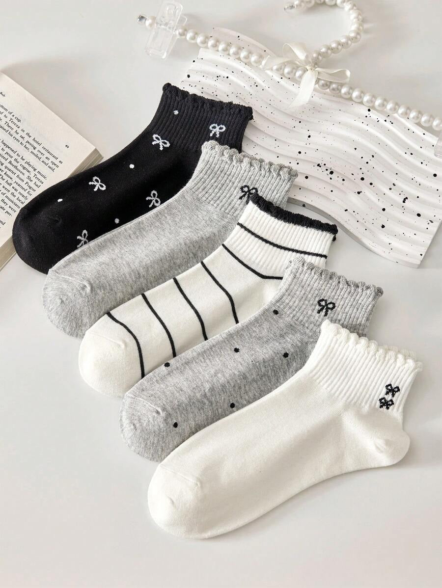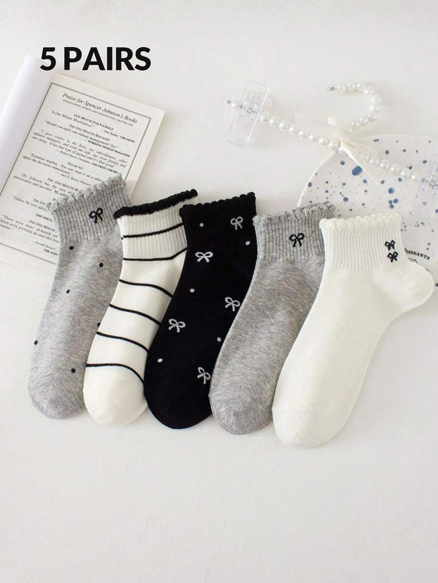 SHEIN جوارب نسائية 5 أزواج قصيرة منقطة