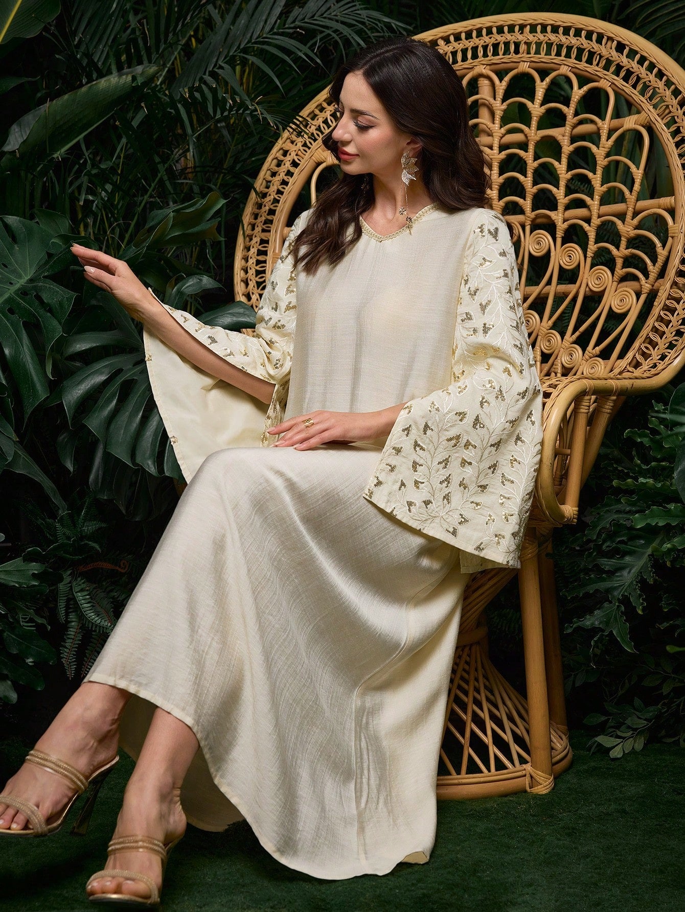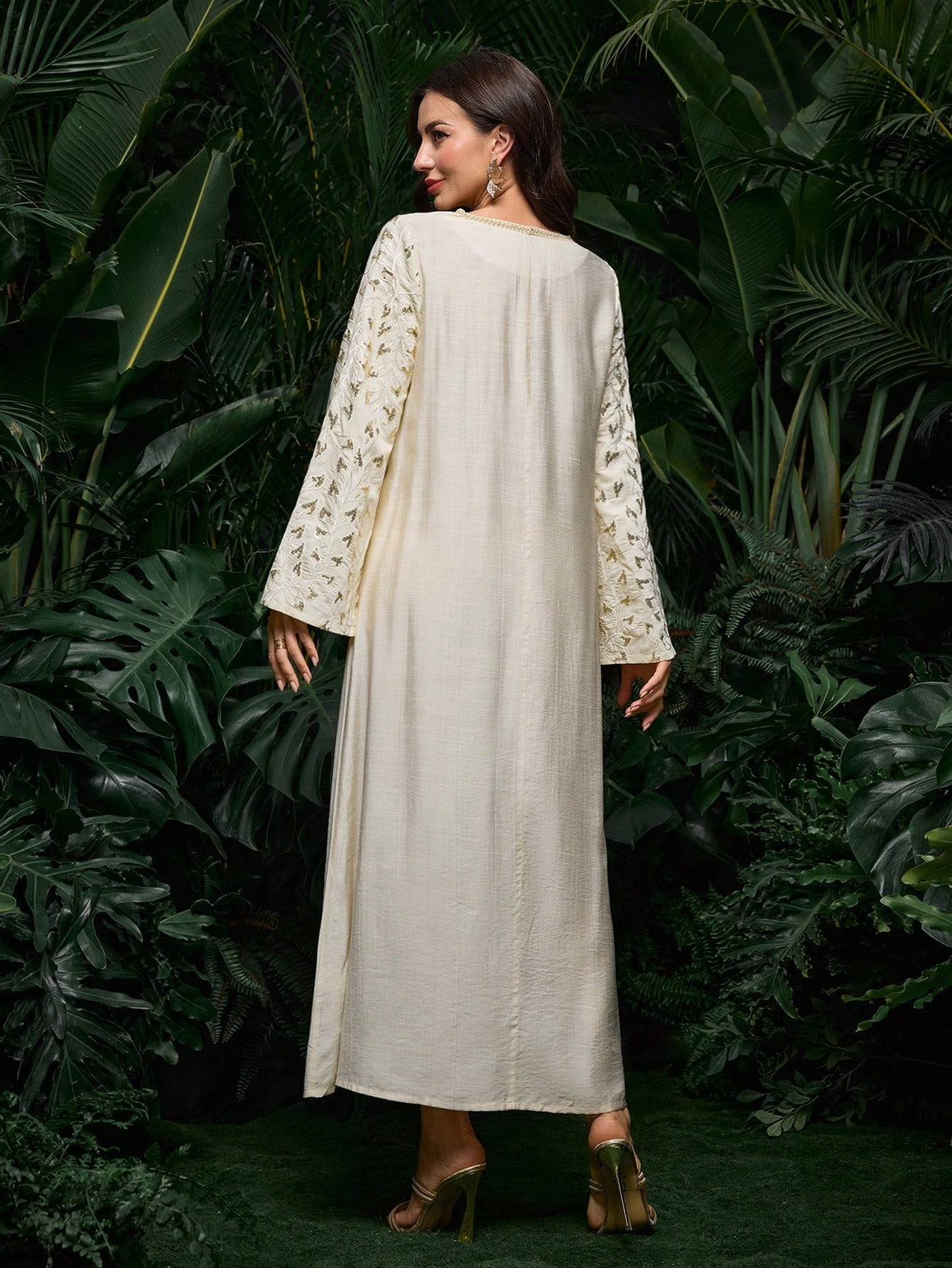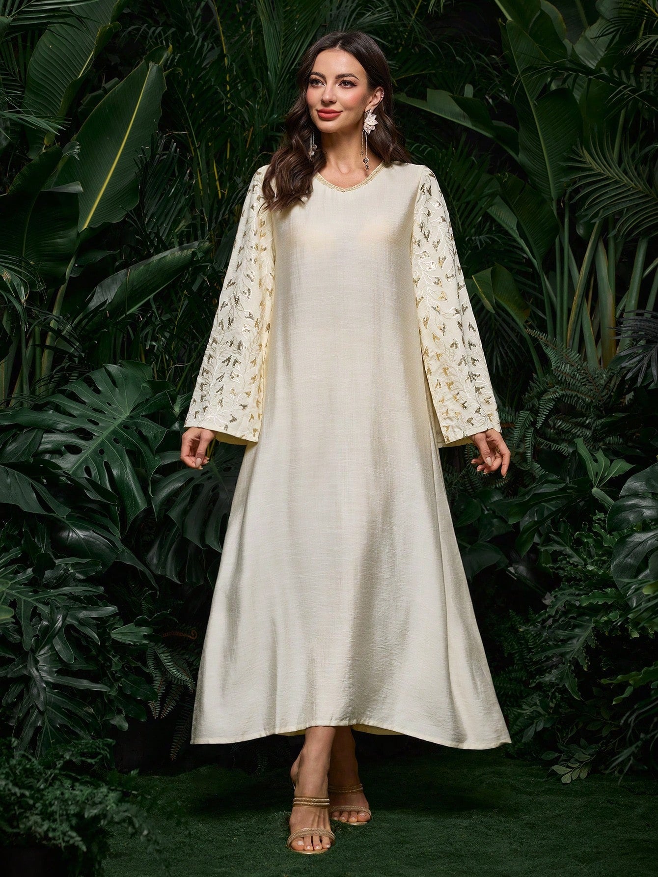 SHEIN Al Najma فستان رقبة V فضفاض بتطريز عربي أنيق
