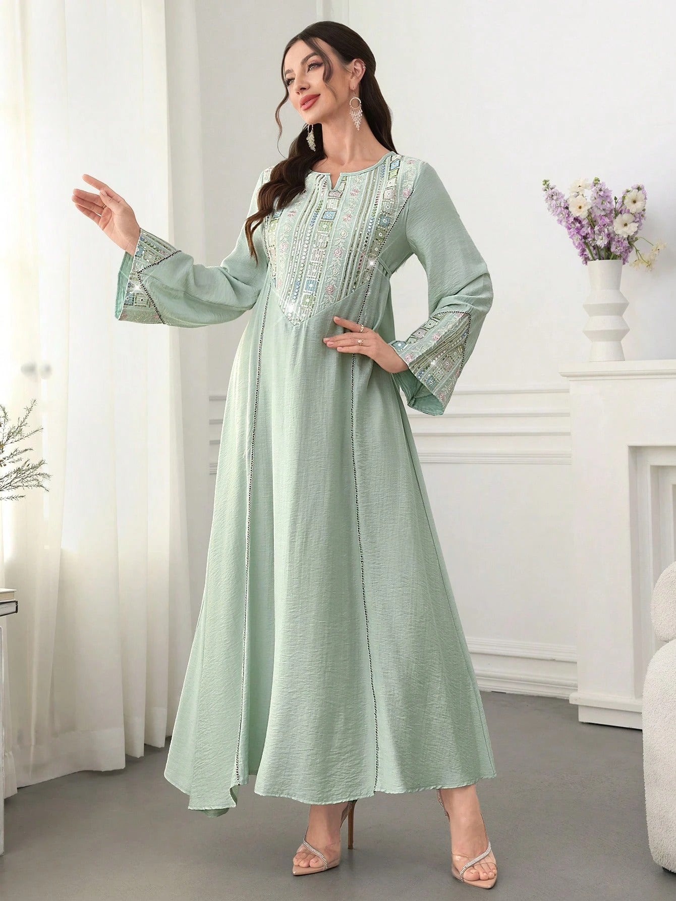 SHEIN Al Najma فستان عربي طويل بأكمام واسعة وياقة دائرية