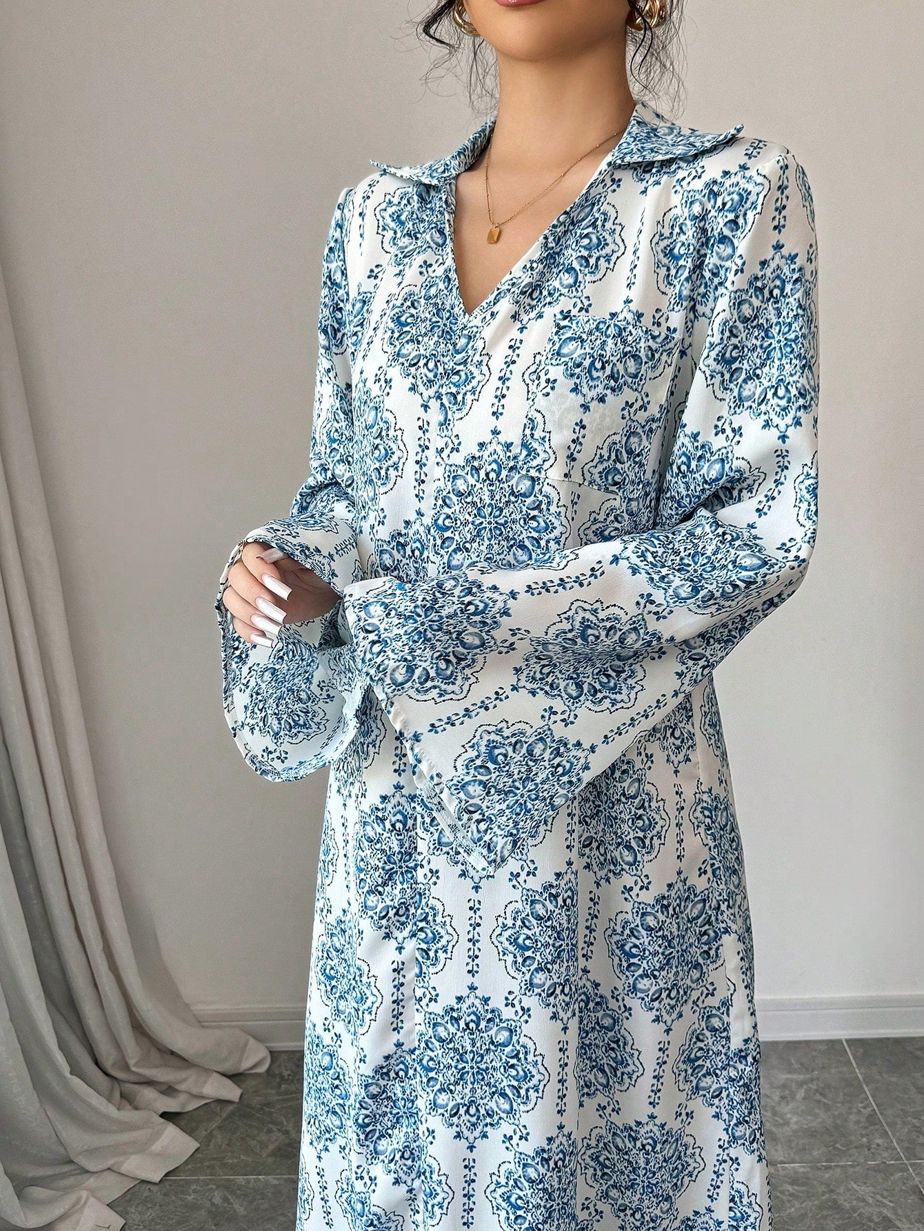 SHEIN Al Najma فستان مطبوع بأكمام جرس