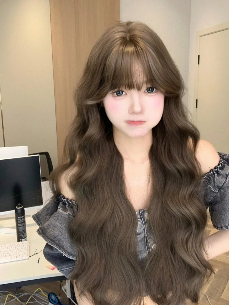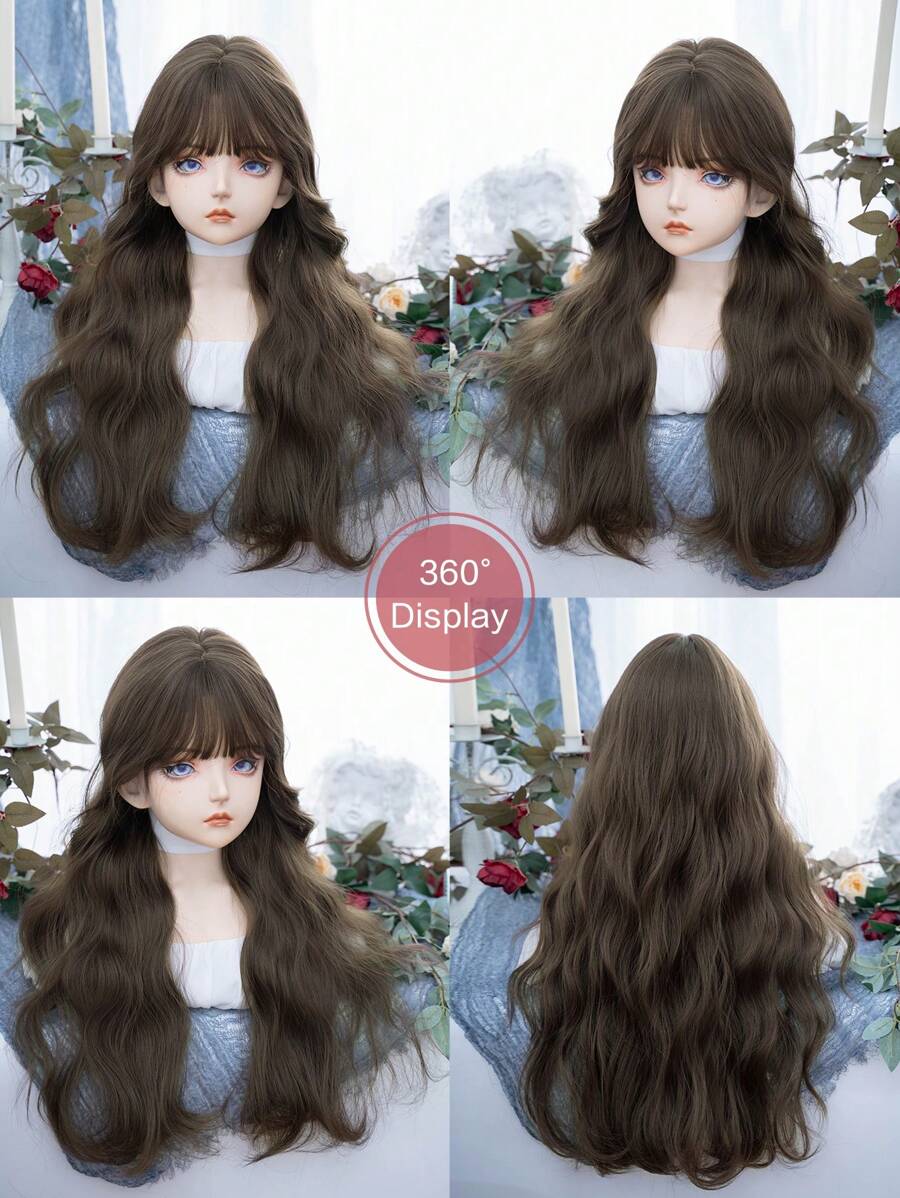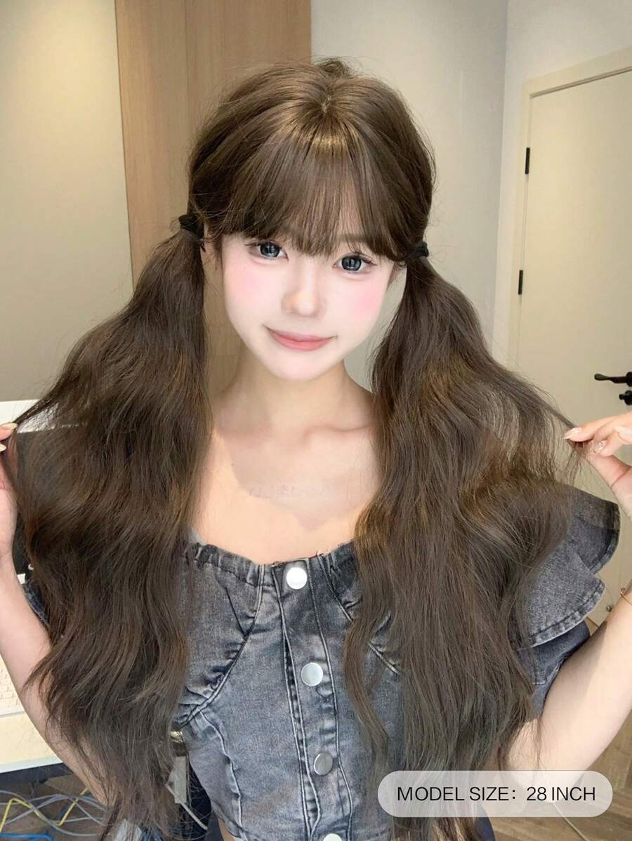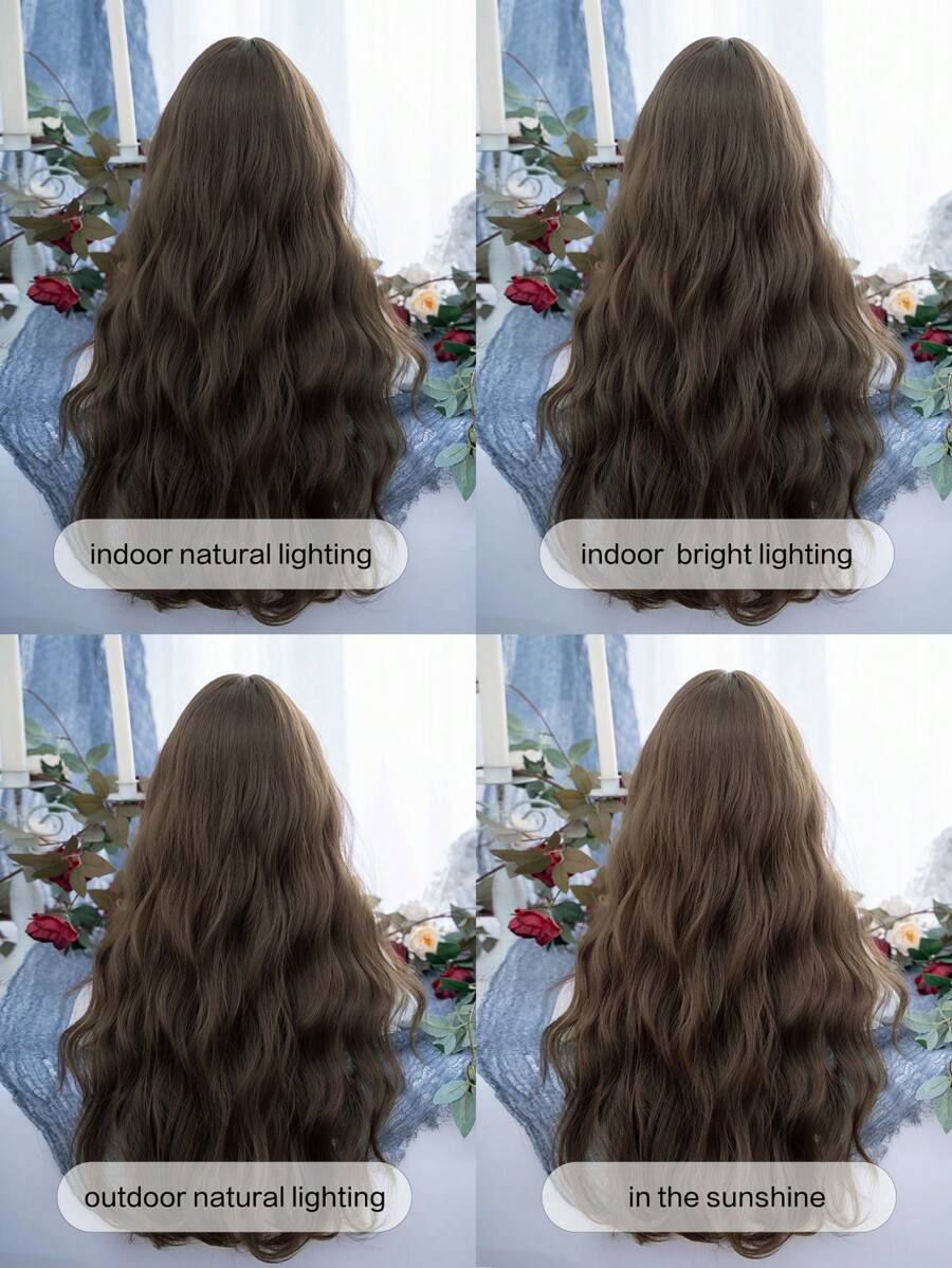 SHEIN AliceGarden باروكة بني صناعية مموجة 28 بوصة