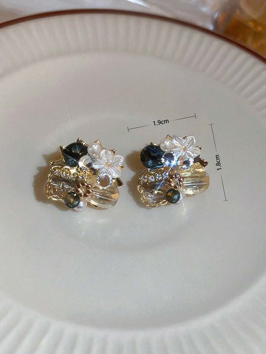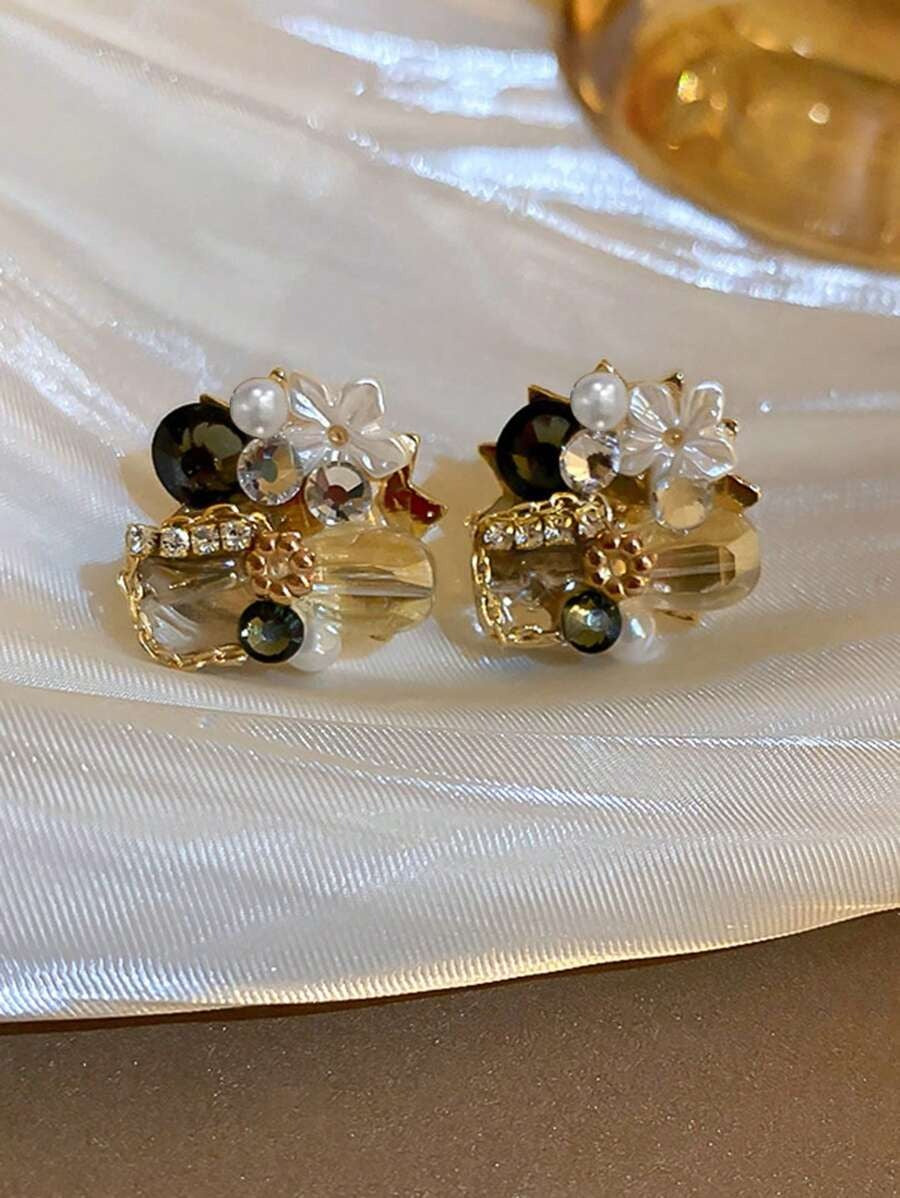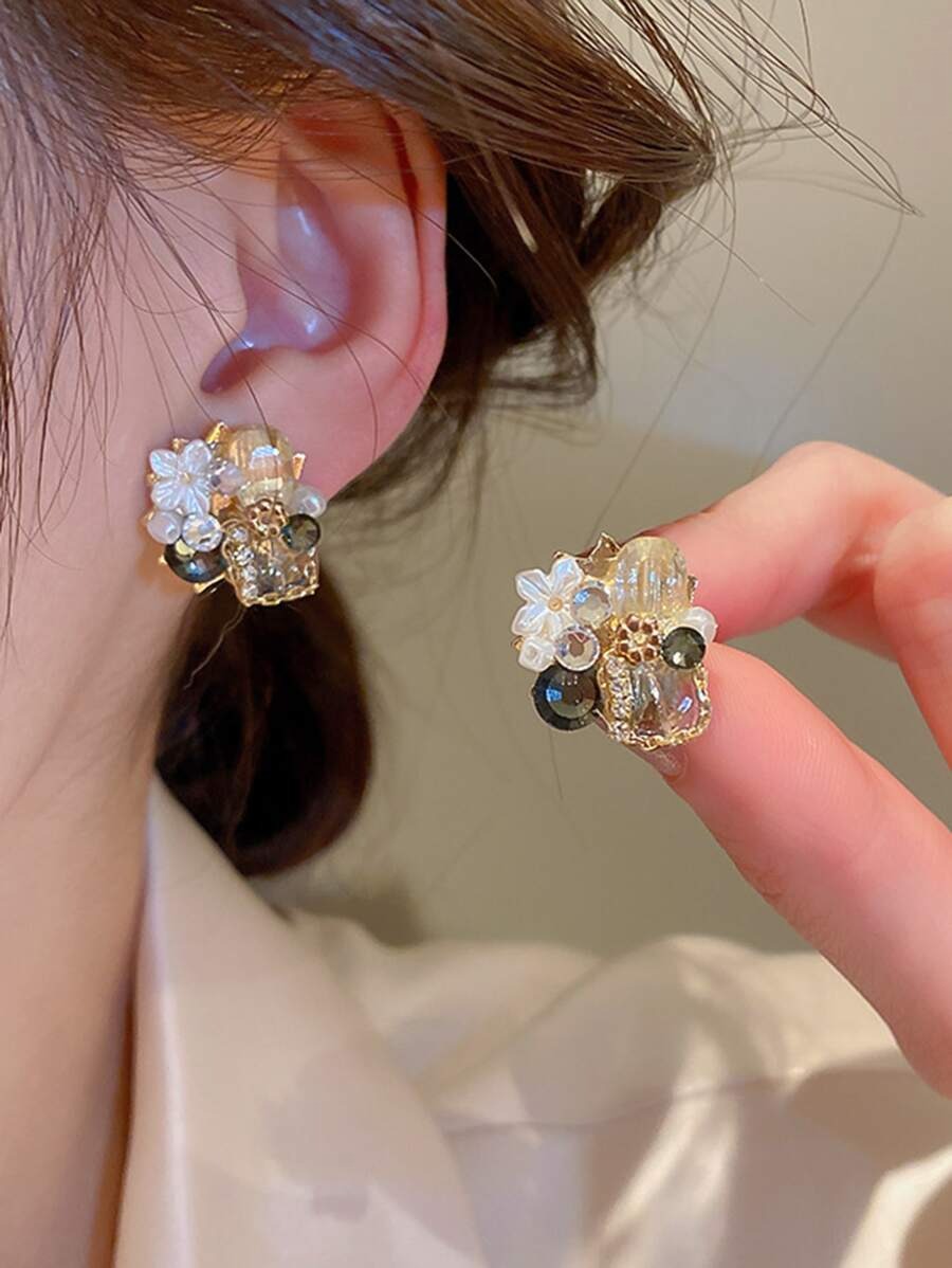 SHEIN Andkiss أقراط مرصعة بالراين ستون والزهور