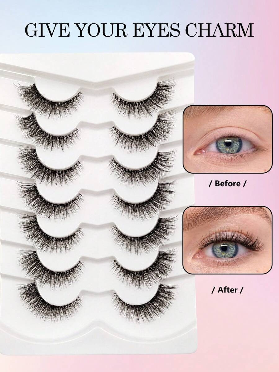 طقم فيه 7 أزواج من الرموش الخفيفة والطبيعية، مصممة بشريط شفاف يثبت بسهولة ويعطي شكل ناعم للعين. خفيفة في الوزن ومريحة حتى في اللبس الطويل، مثالية للّوك اليومي بدون ما تبان صناعية. قابلة لإعادة الاستخدام وتبقى محافظة على شكلها.