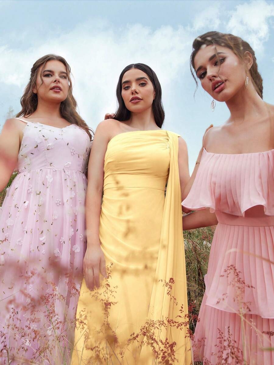 SHEIN Aureia فستان أصفر أنيق طويل بكتف واحد
