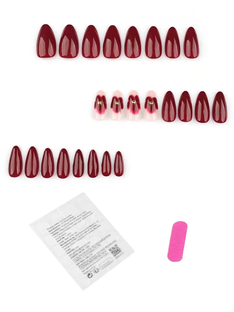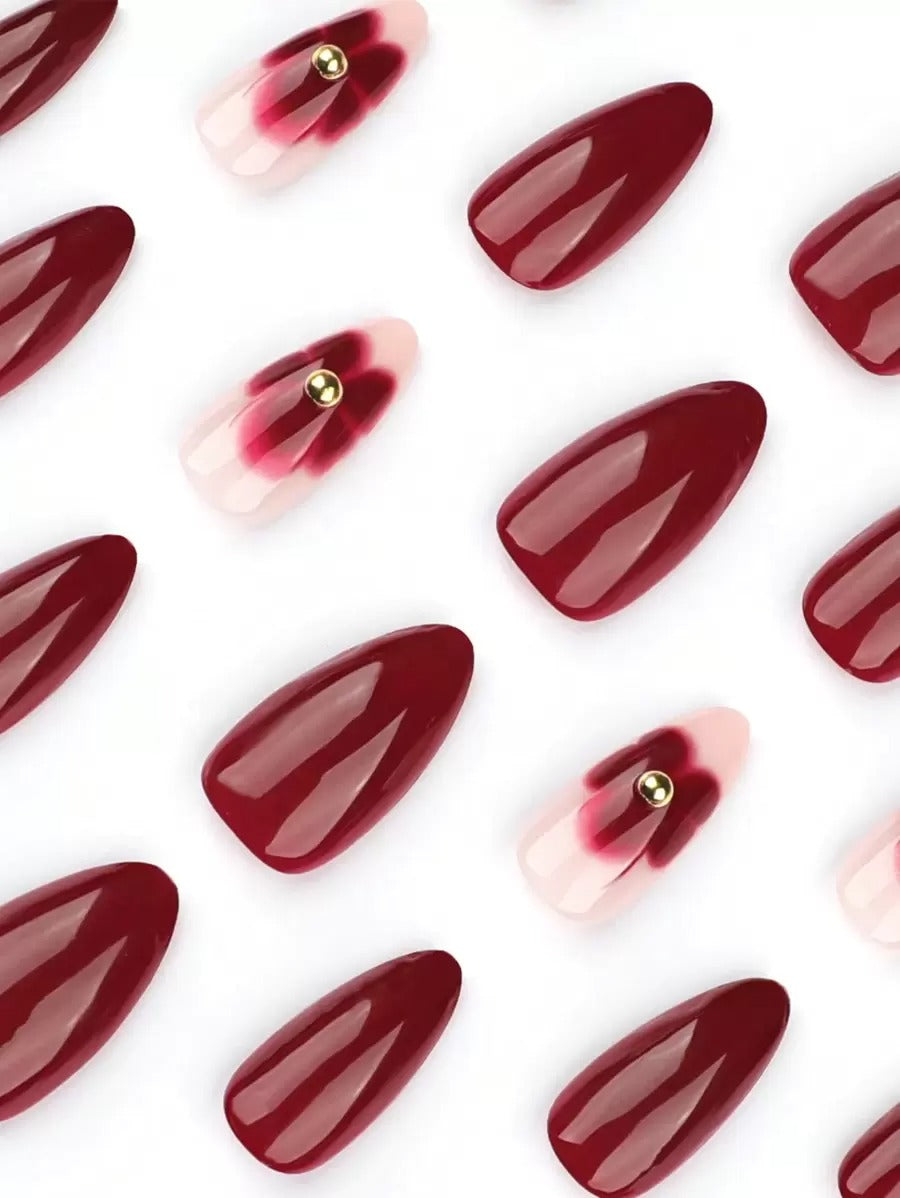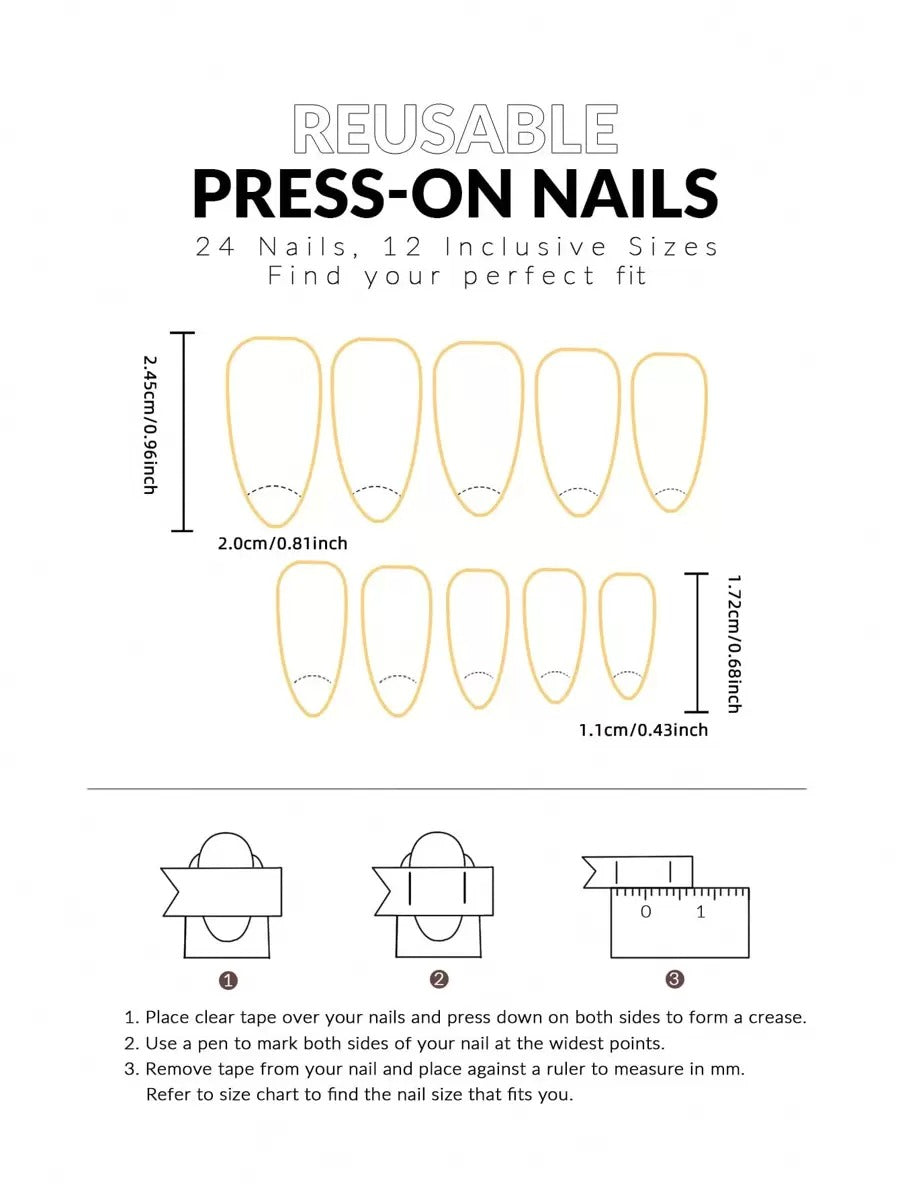 طقم أظافر لوزية فرنسية بطبعة ورد – 24 قطعة 🌺