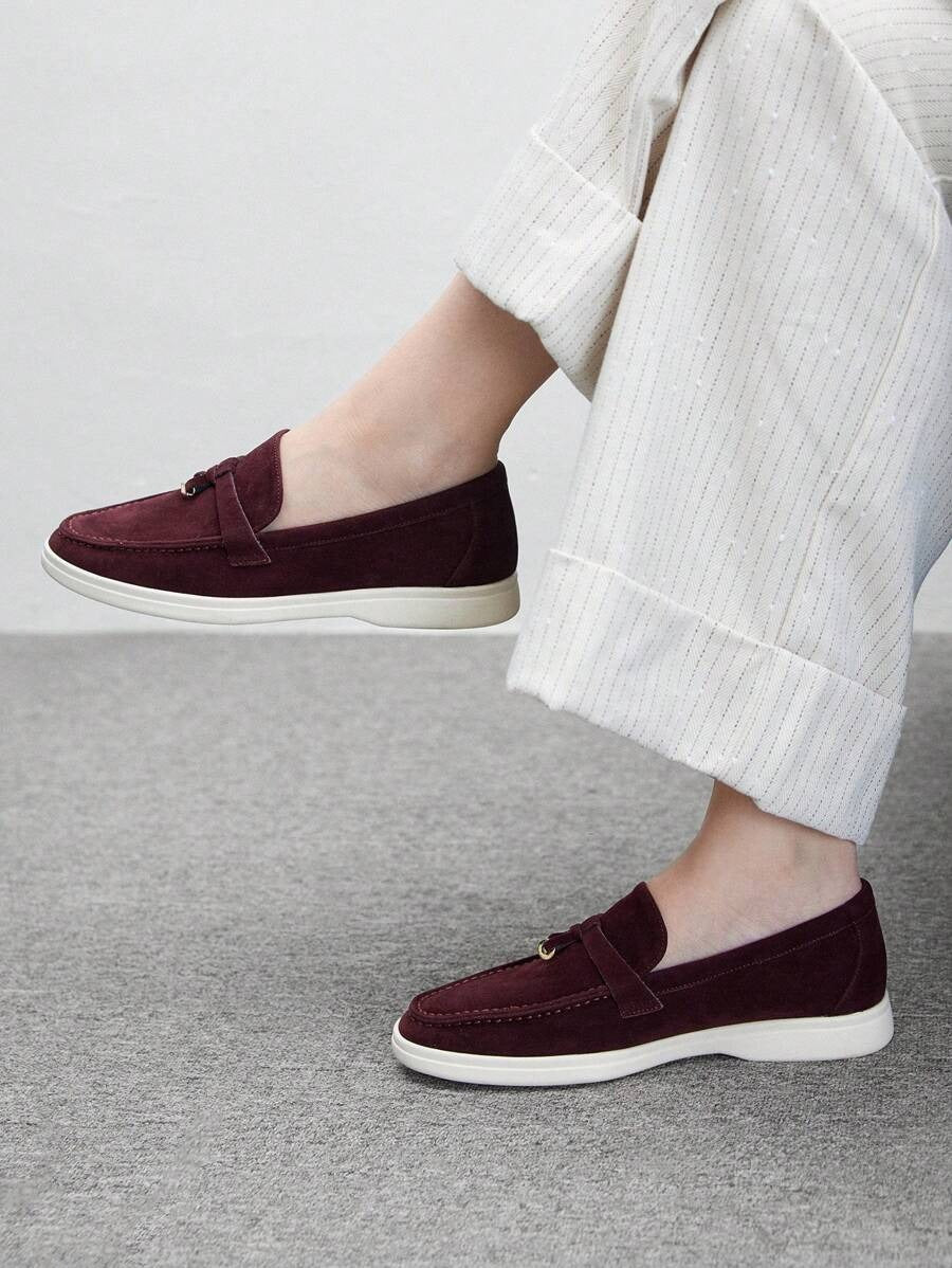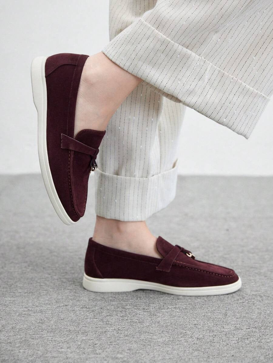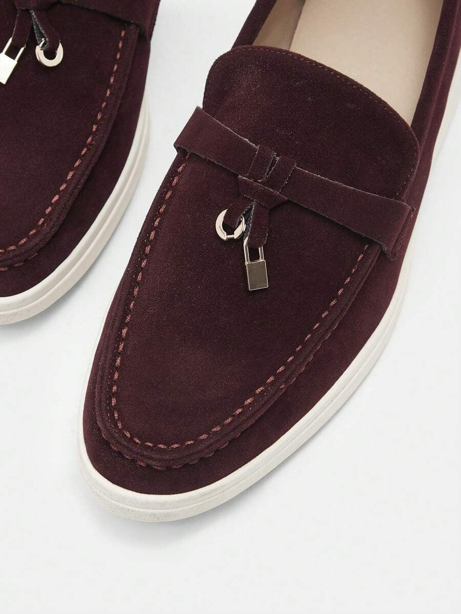 SHEIN CUCCOO BIZCHIC لوفر مسطح بلون عنابي ناعم