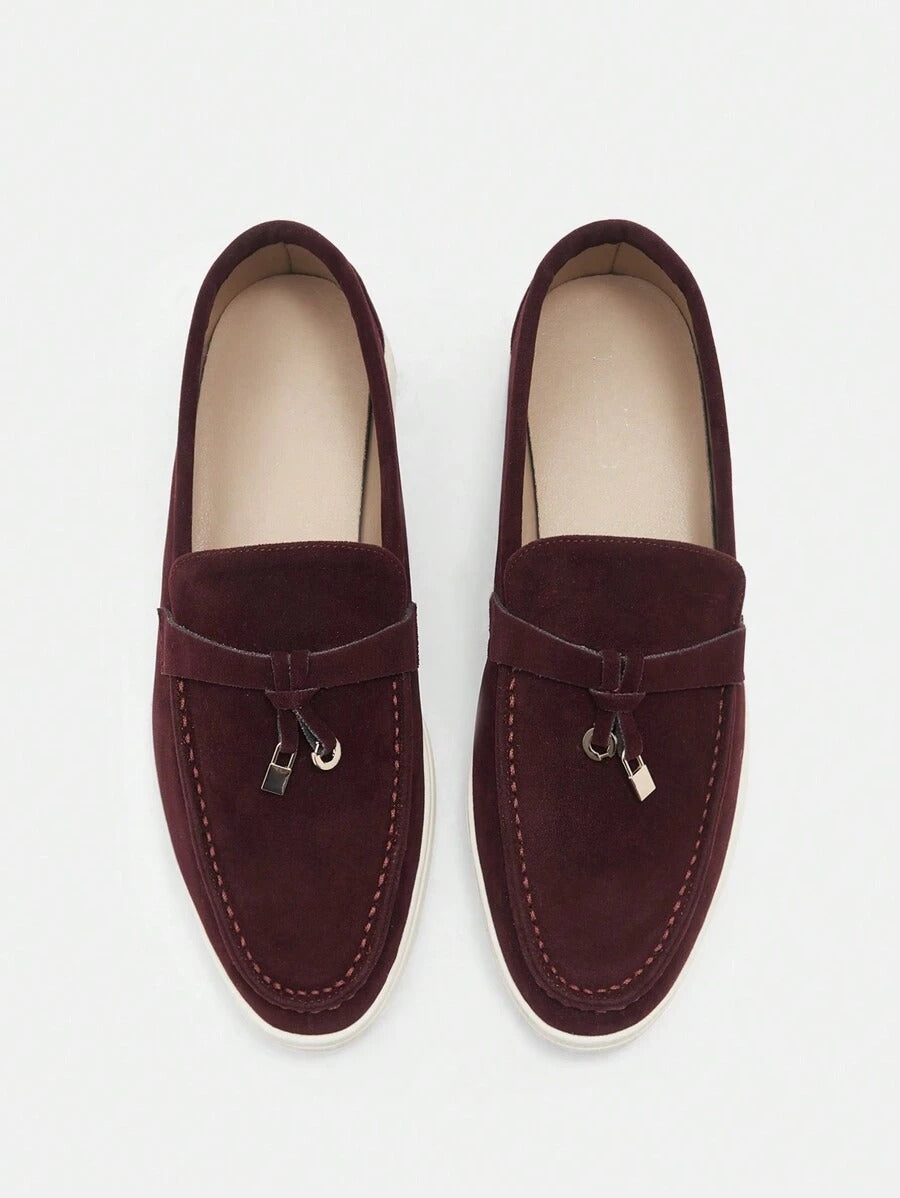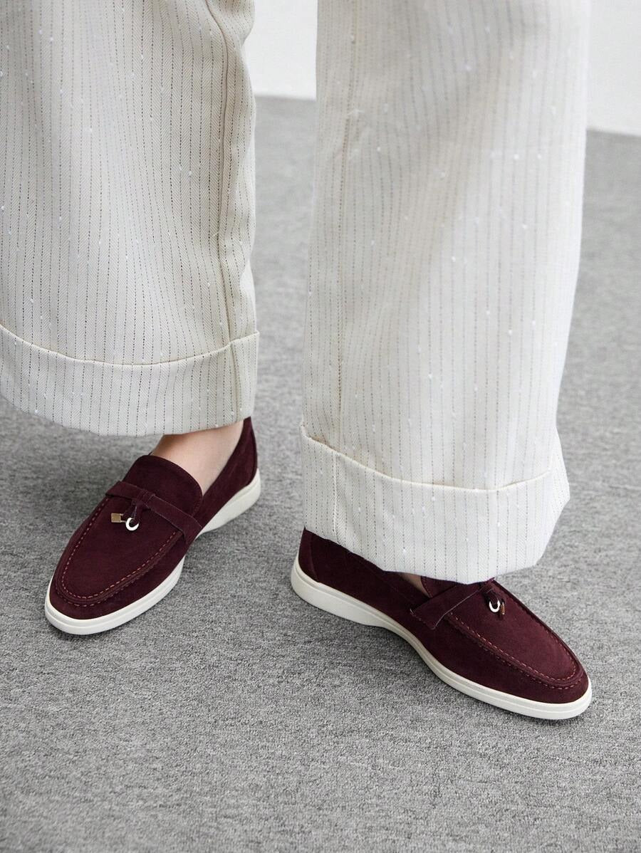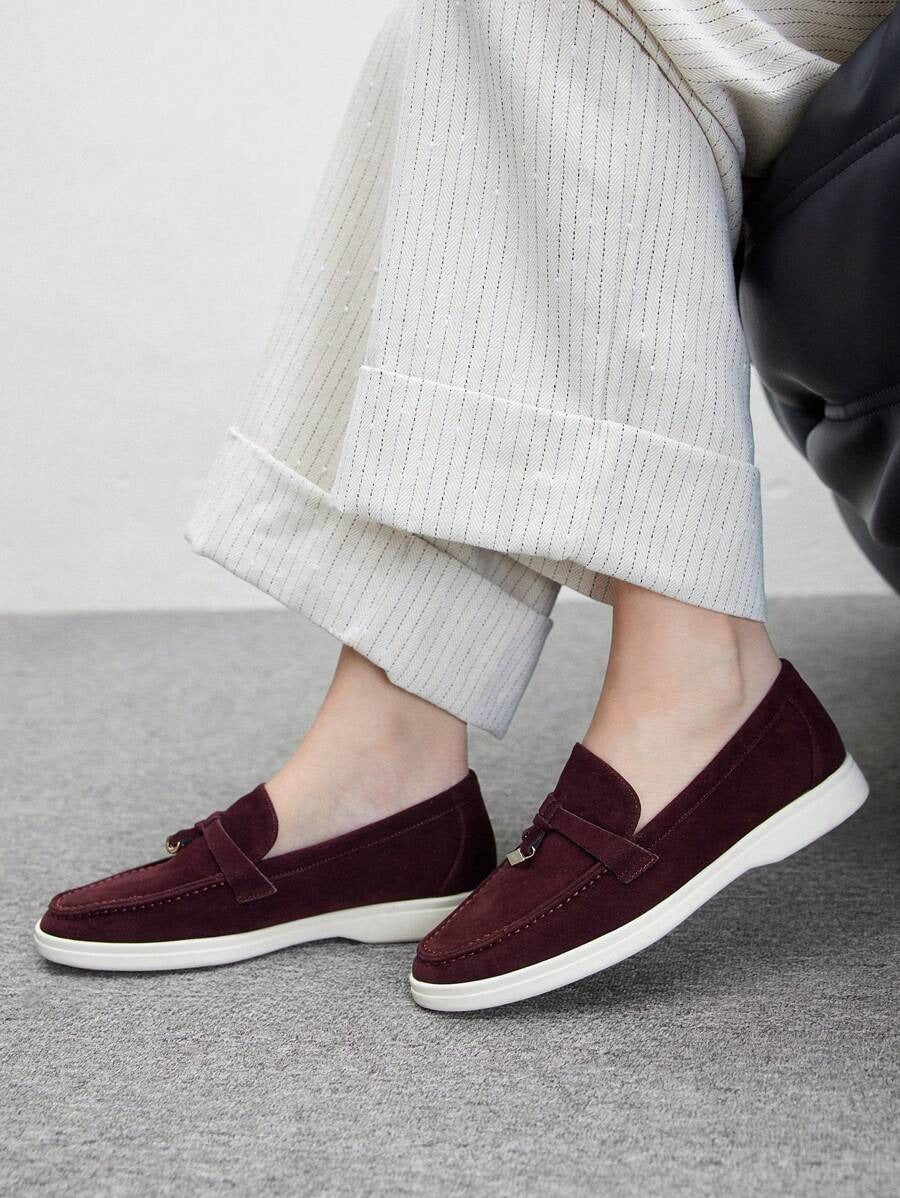SHEIN CUCCOO BIZCHIC لوفر مسطح بلون عنابي ناعم