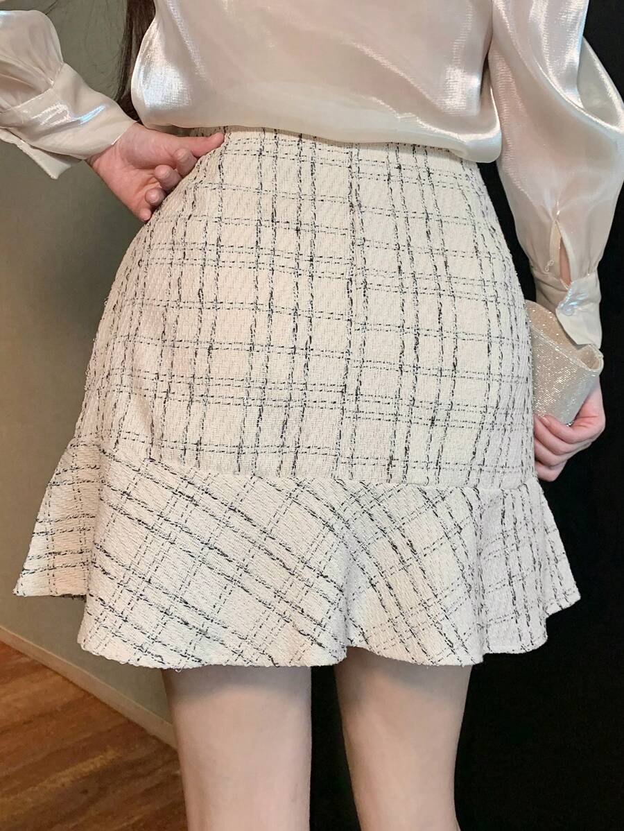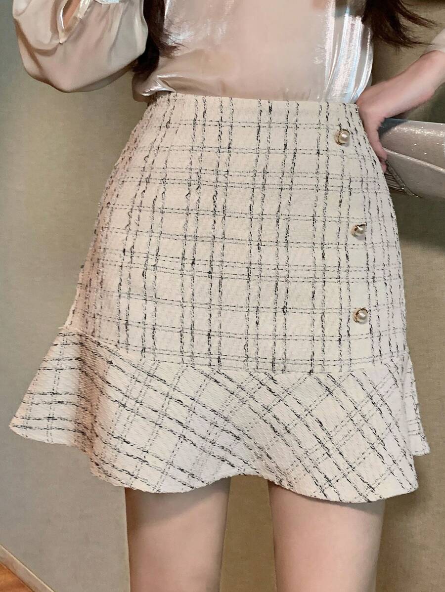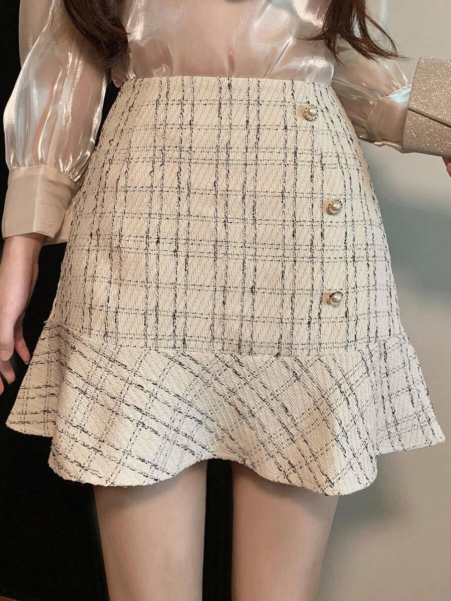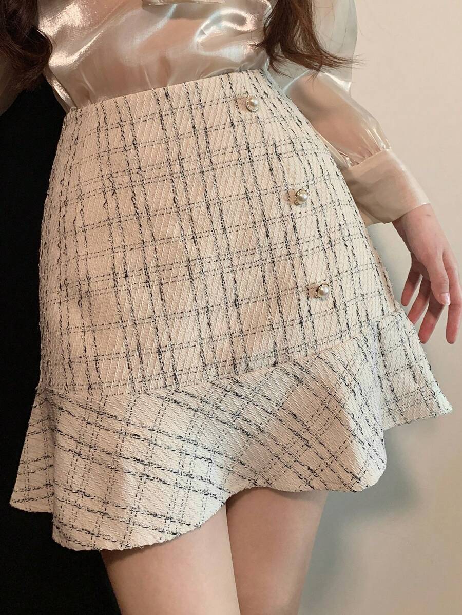 SHEIN DAZY تنورة أنيقة بقصة مع أزرار جانبية وحافة مرفرفة