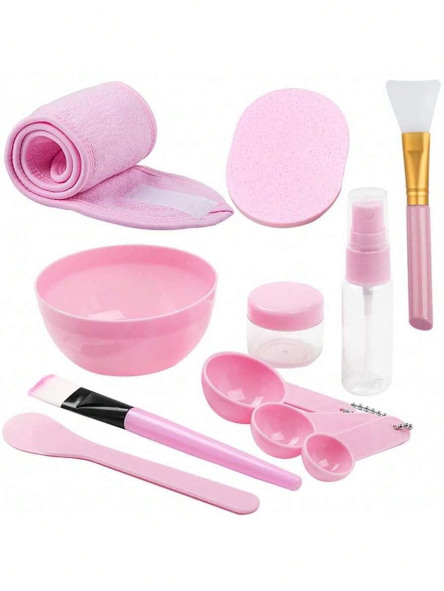 SHEIN مجموعة خلط قناع سيليكون 11 قطعة وردي للوجه والشعر