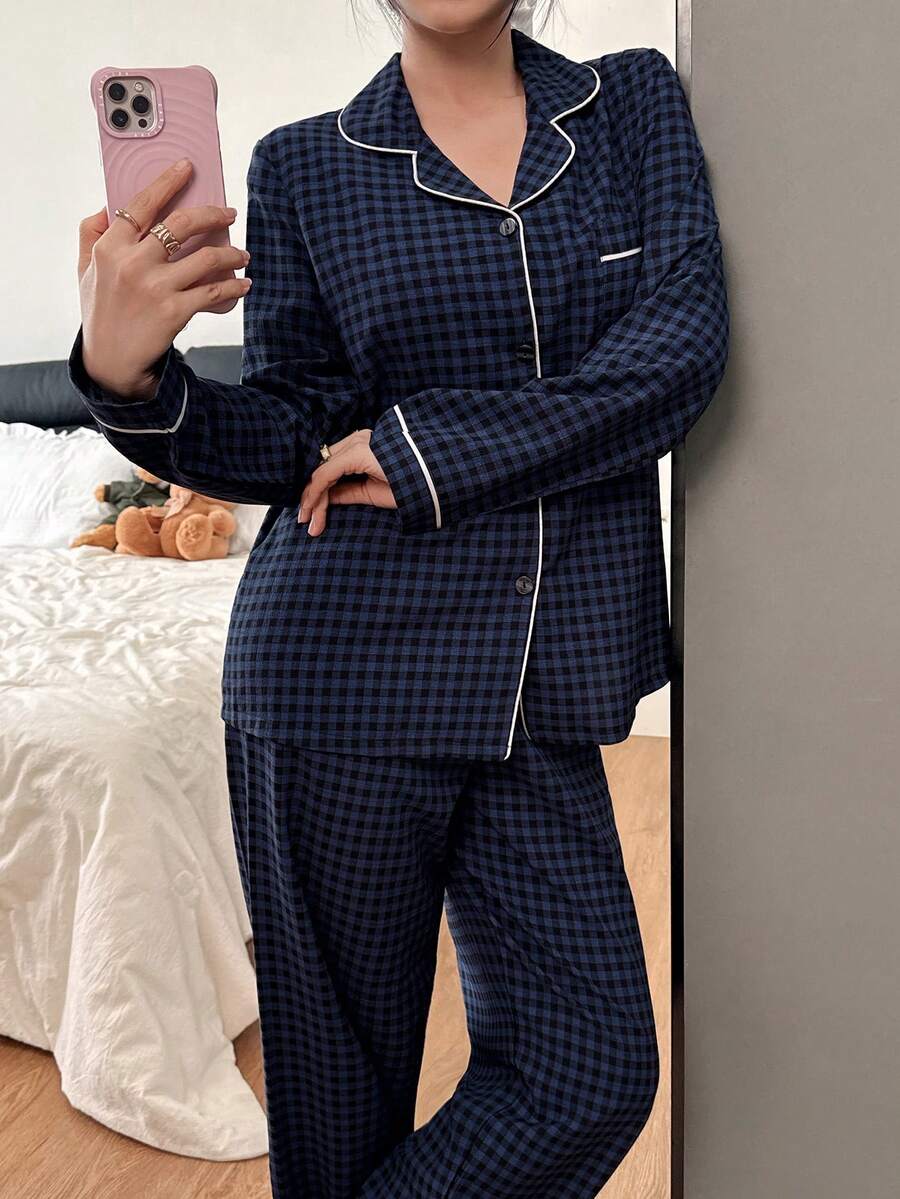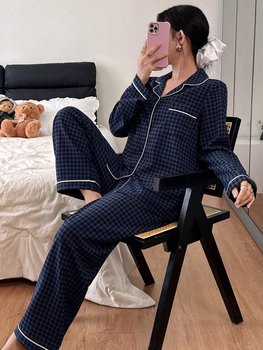 SHEIN Dream Adore طقم بيجامة بلوزة بياقة مربعة وبنطلون