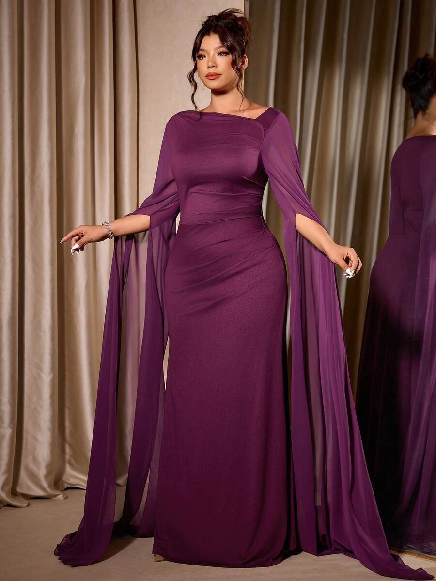 فستان Elenzga أنيق للمقاسات الكبيرة بلون أحمر بنفسجي 💜✨
