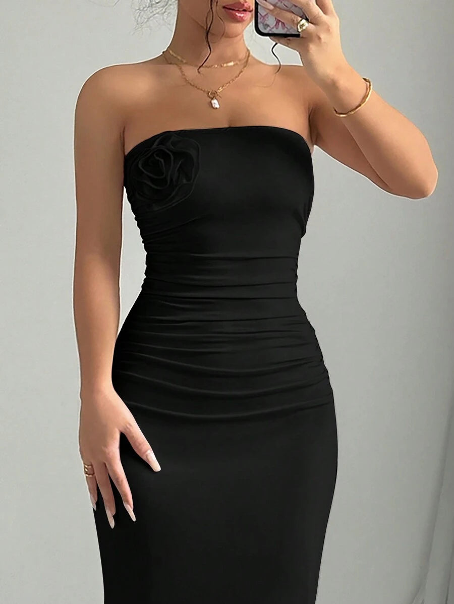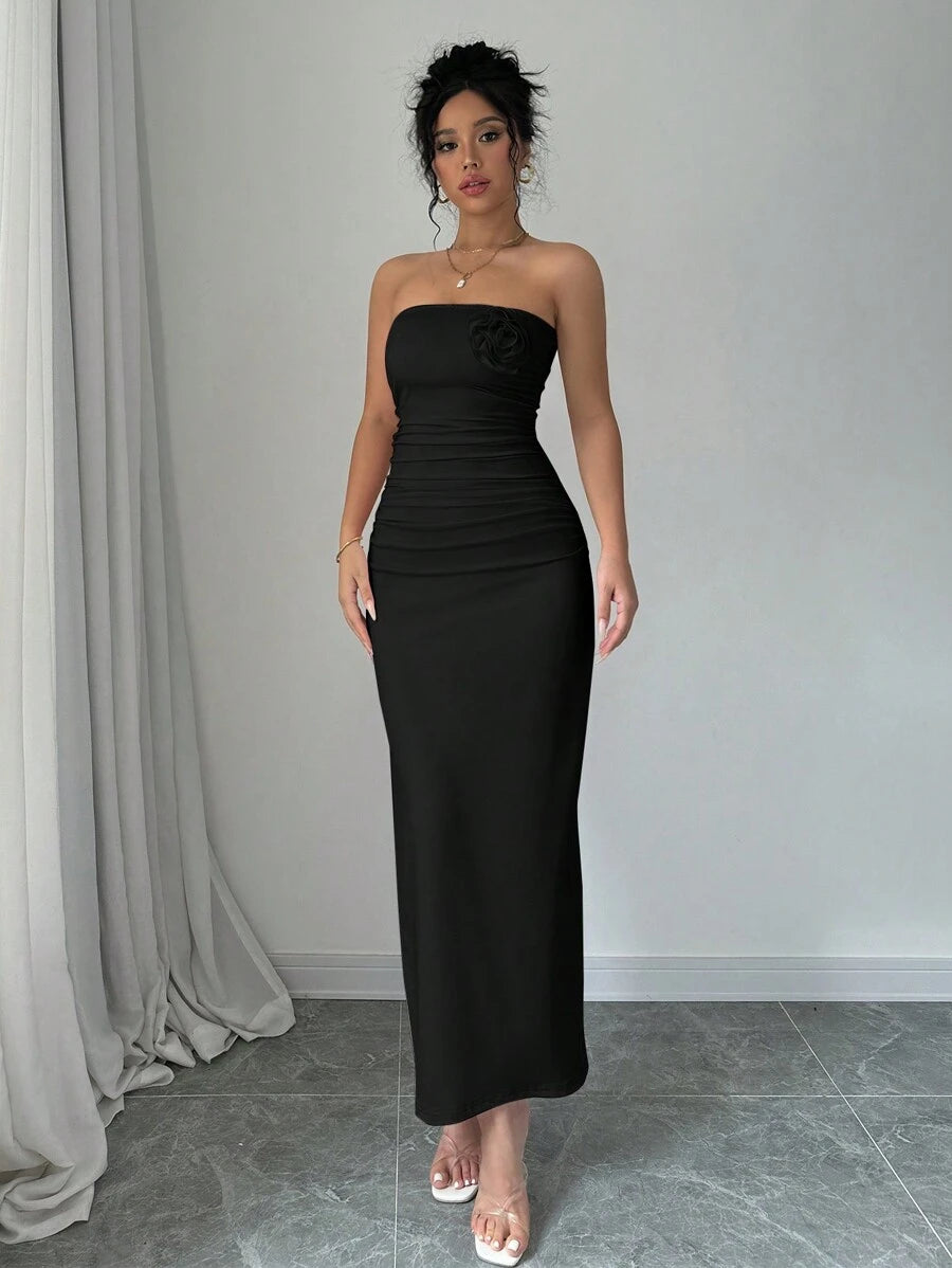 👗 qualityElenzga فستان ماكسي أنيق مزخرف بزهور ثلاثية الأبعاد
