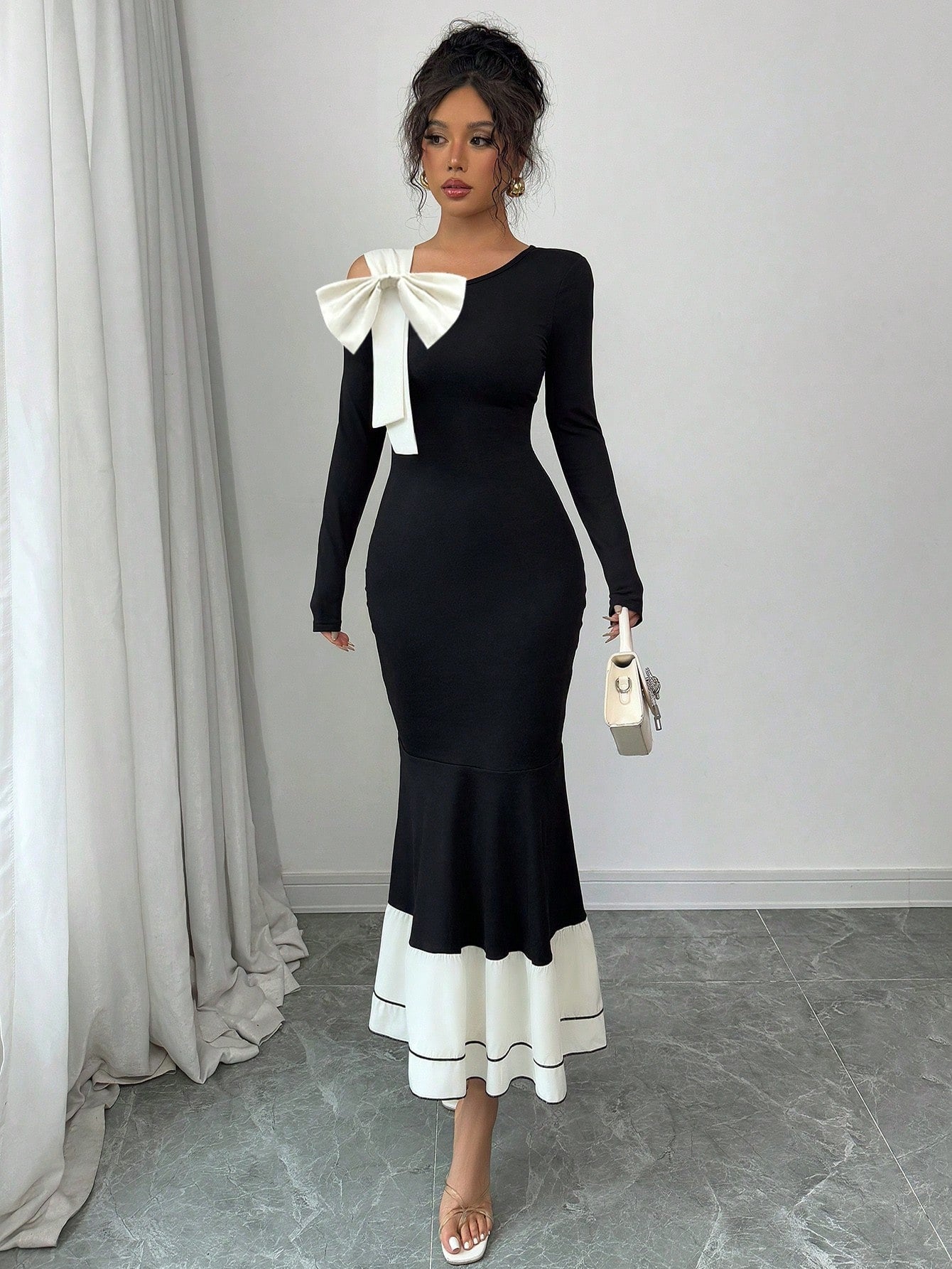 SHEIN Elenzga فستان نسائي بأكمام طويلة مع فيونكة ملونة