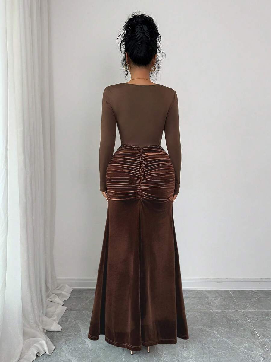 👗✨ SHEIN Elenzya فستان نسائي أنيق ضيق الخصر بالبني 🤎