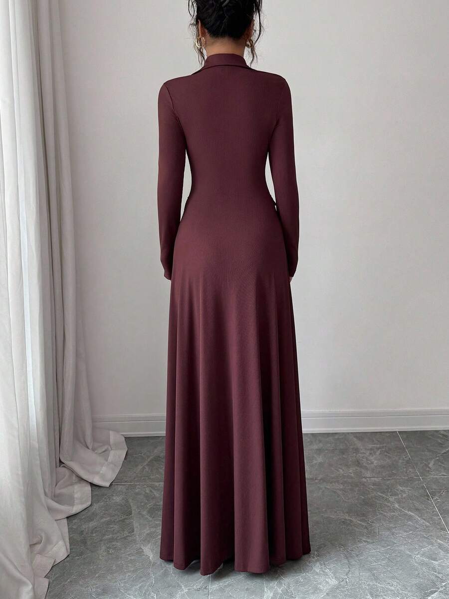 فستان نسائي طويل أنيق محبوك بلون بني داكن