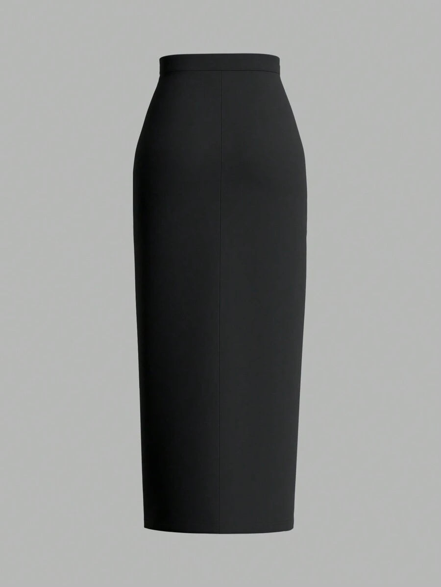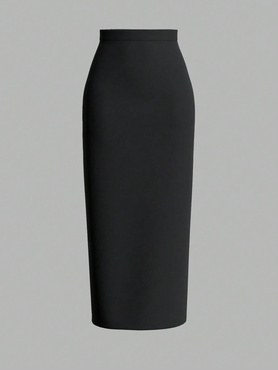 SHEIN Firerie تنورة سوداء طويلة بخصر عالي ضيقة وأنيقة