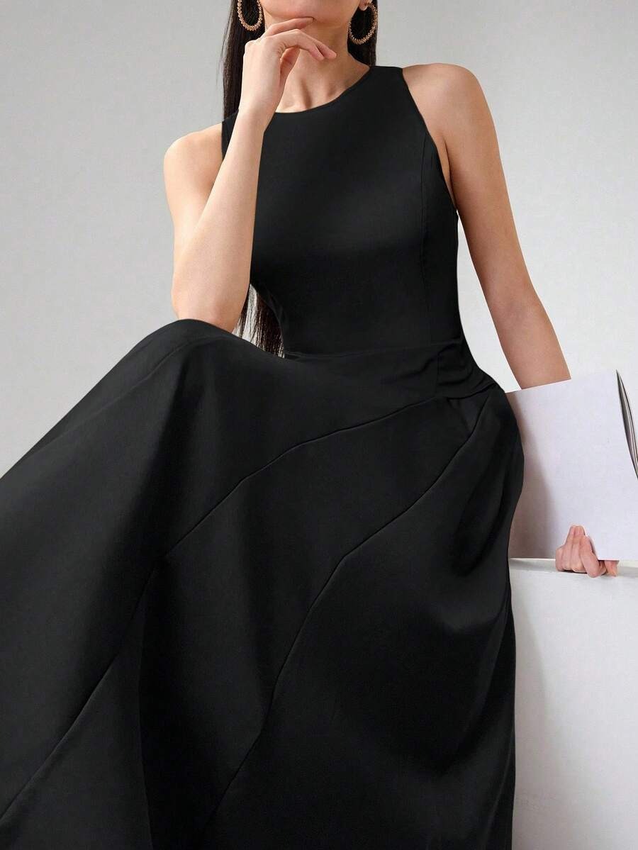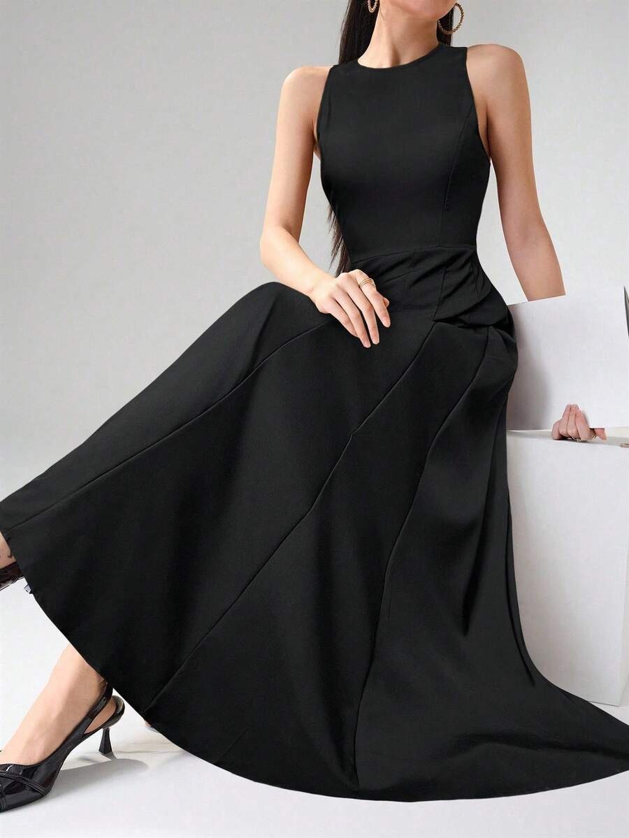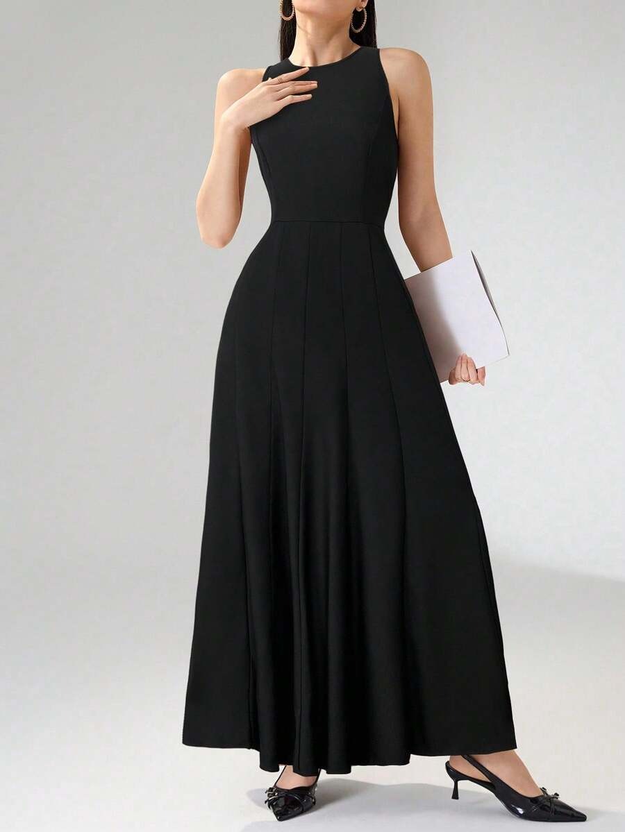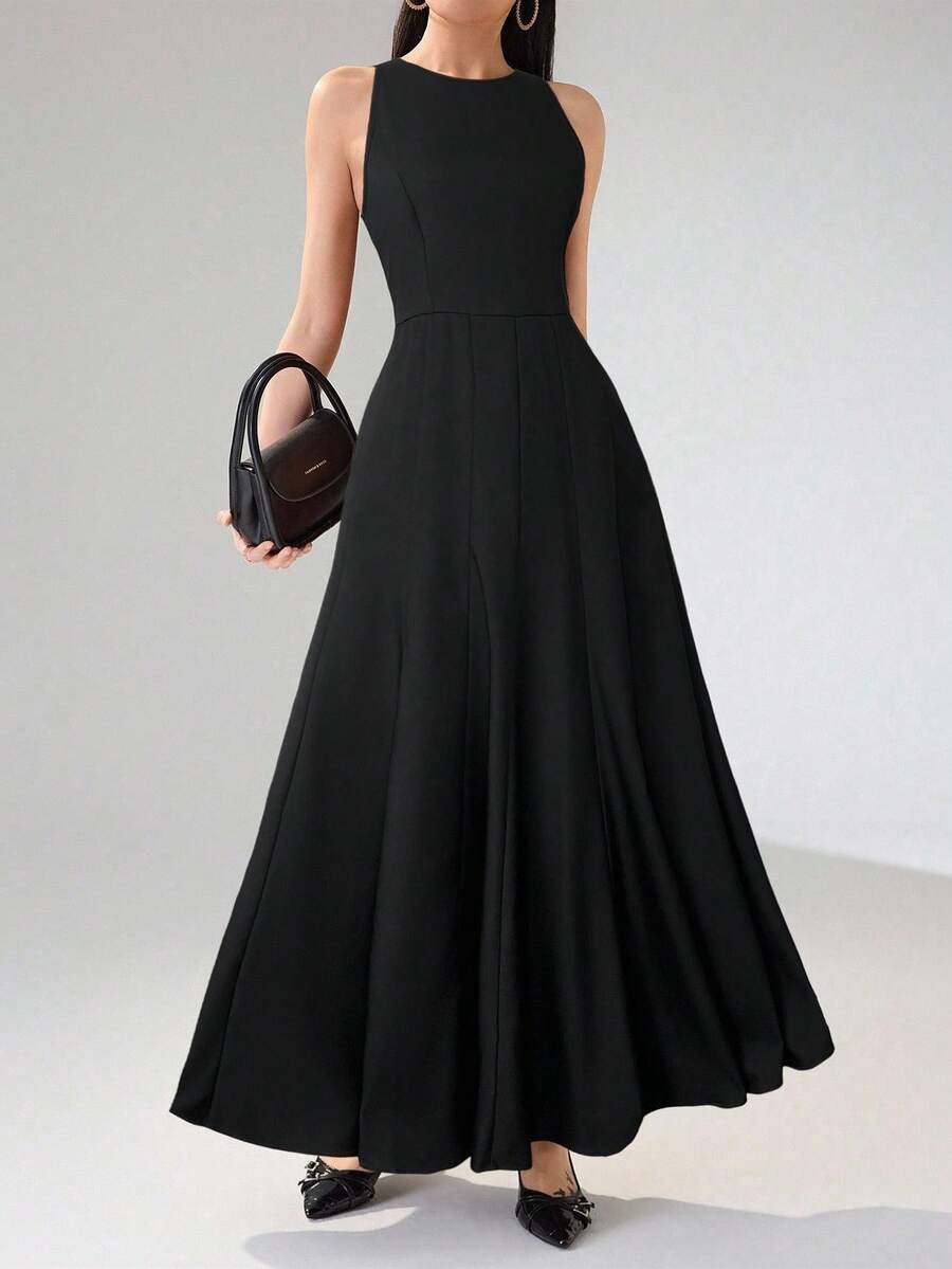SHEIN Heiryn فستان ماكسي ناعم بلون أسود