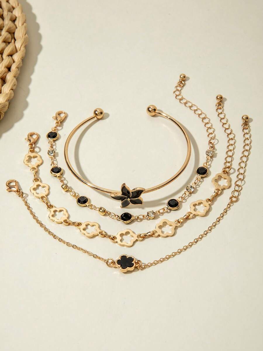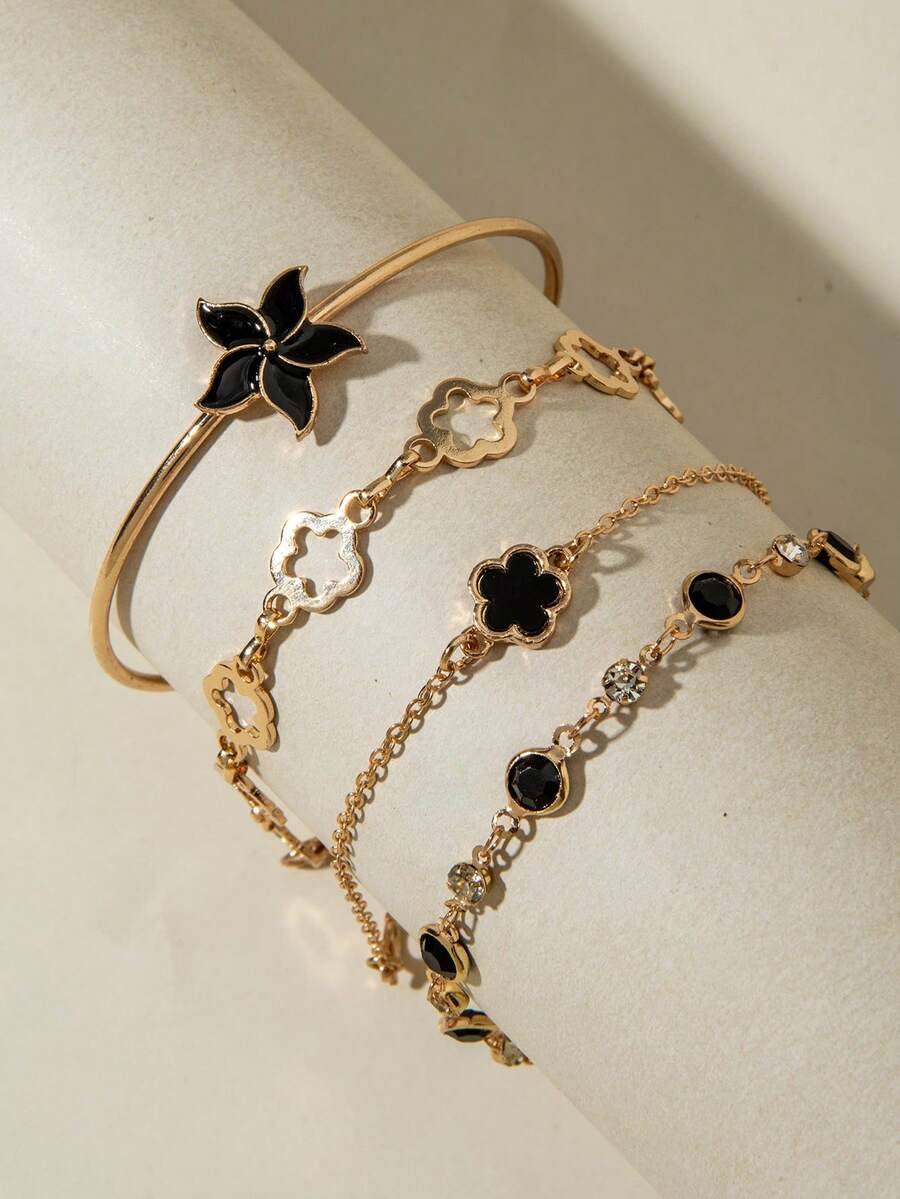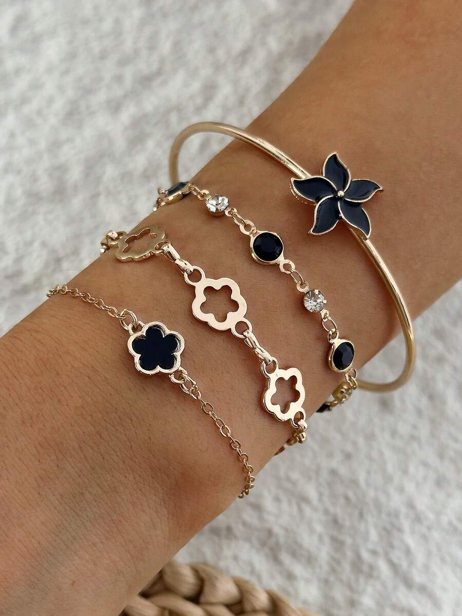 SHEIN imoli مجموعة أساور 4 قطع مزينة بالزهور والراين