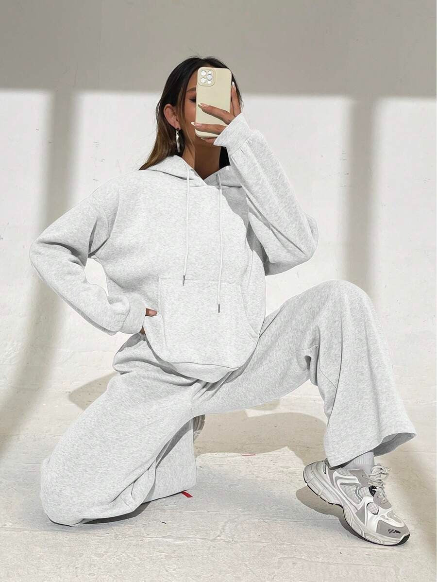 طقم INAWLY قطعتين – هودي وبنطلون بلون رمادي فاتح 🌫️