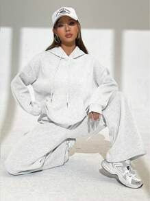 SHEIN INAWLY طقم نسائي كاجوال من قطعتين بلون رمادي فاتح