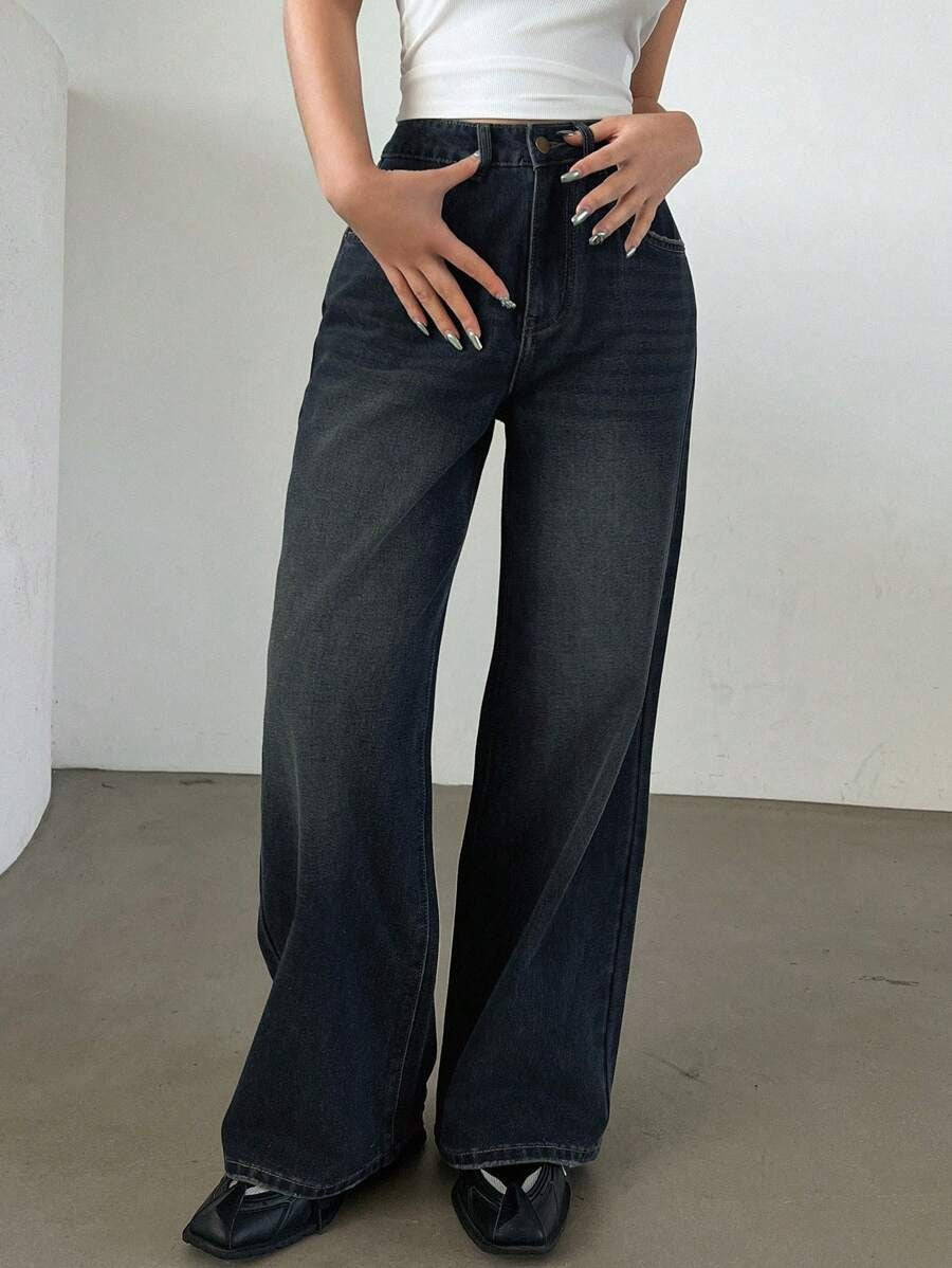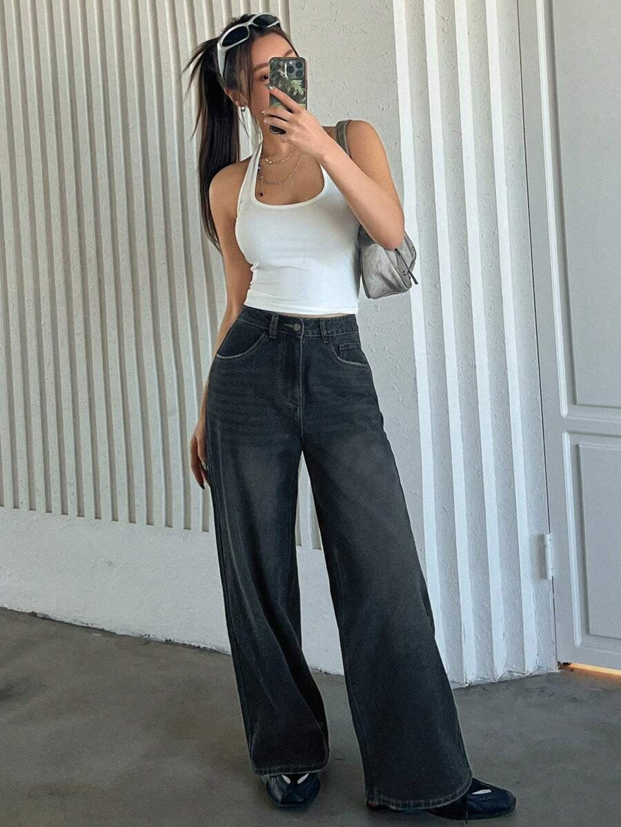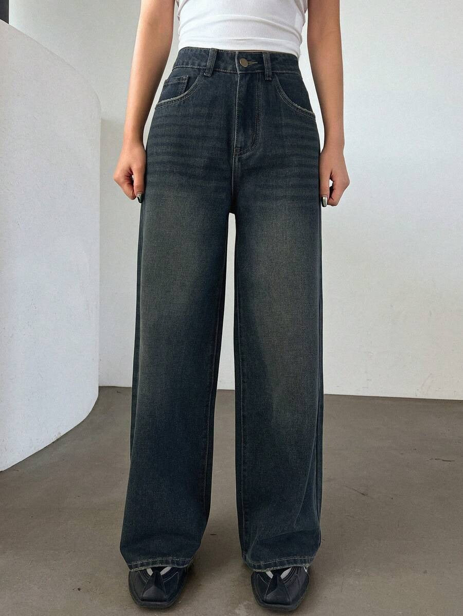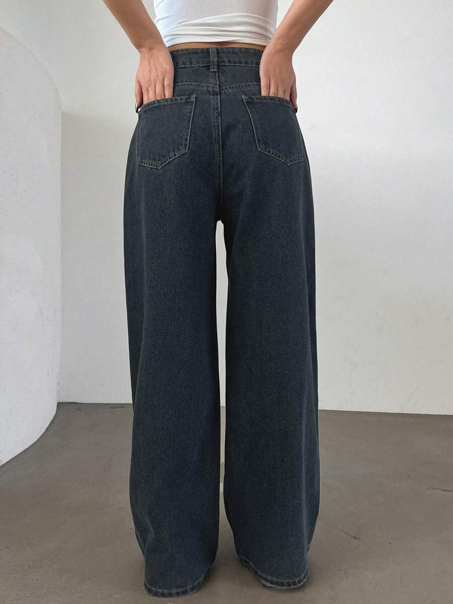 جينز بناتي واسع من الخصر للقدم، بقصة مريحة وستايل دنيم قديم (فتنتاج) بتفاصيل تشرخ وتلاشي ناعم يضيف له لمسة عصرية. لونه أزرق كاجوال مع زر وسوستة وجيوب عملية. قماش خفيف وغير شفاف – مثالي للمناسبات اليومية وحتى المهرجانات 🎉