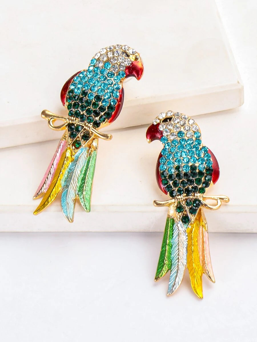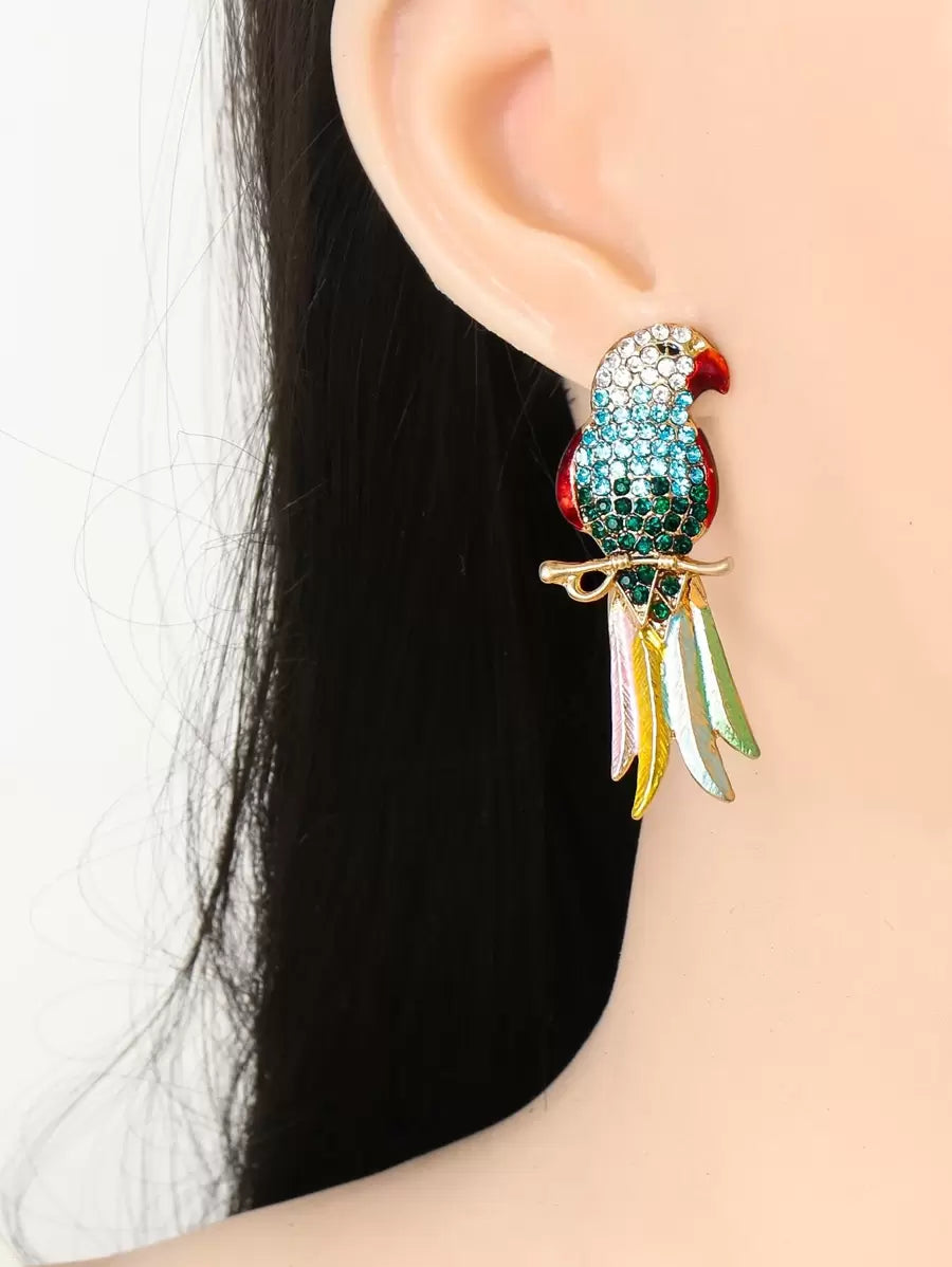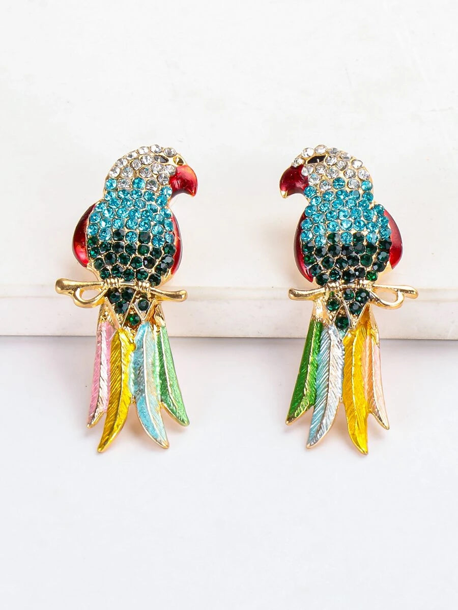 SHEIN juran زوج أقراط مسماري بتصميم طيور وحجر الراين