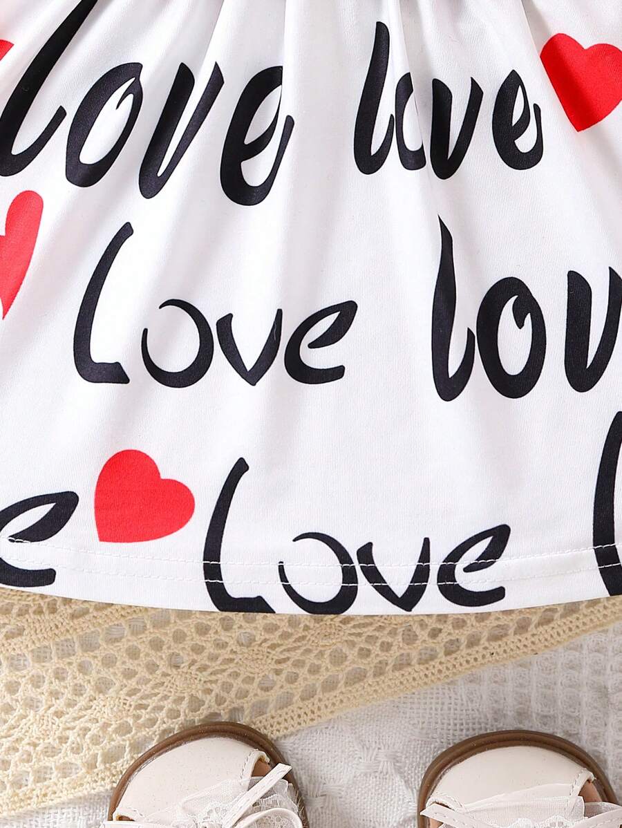 SHEIN Kids فستان بنات صيفي أنيق للفتيات الصغيرات بطبعة حرف وقلب وقوس كبير