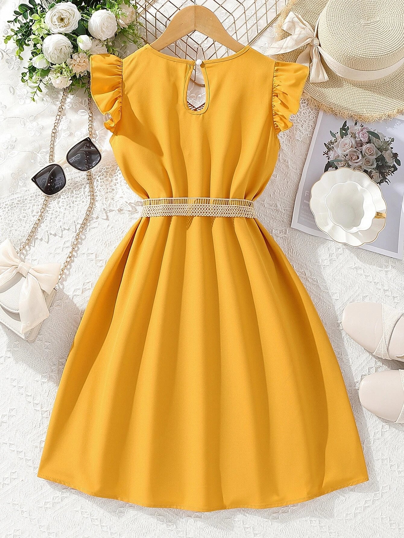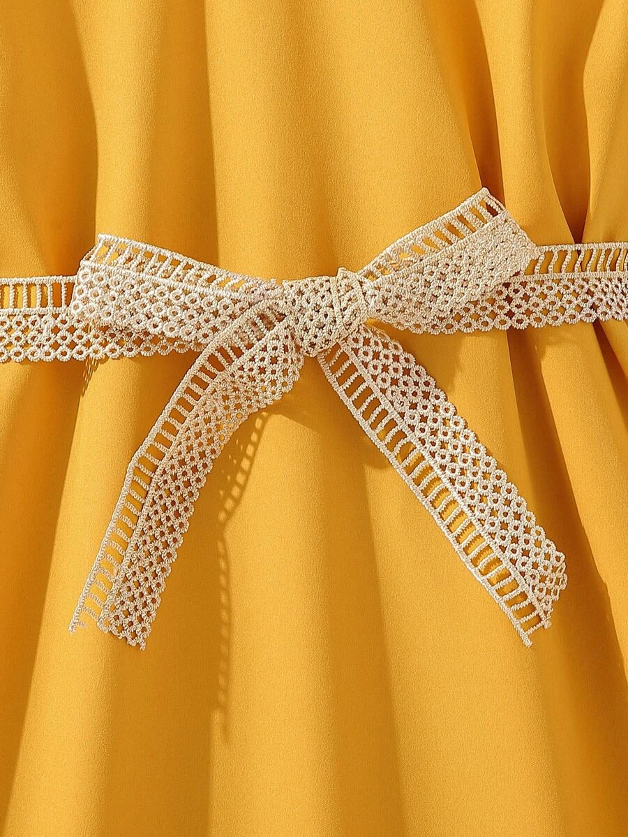 SHEIN Kids EVRYDAY فستان بحزام من طبقات الرفل يناسب الفتيات في سن المراهقة