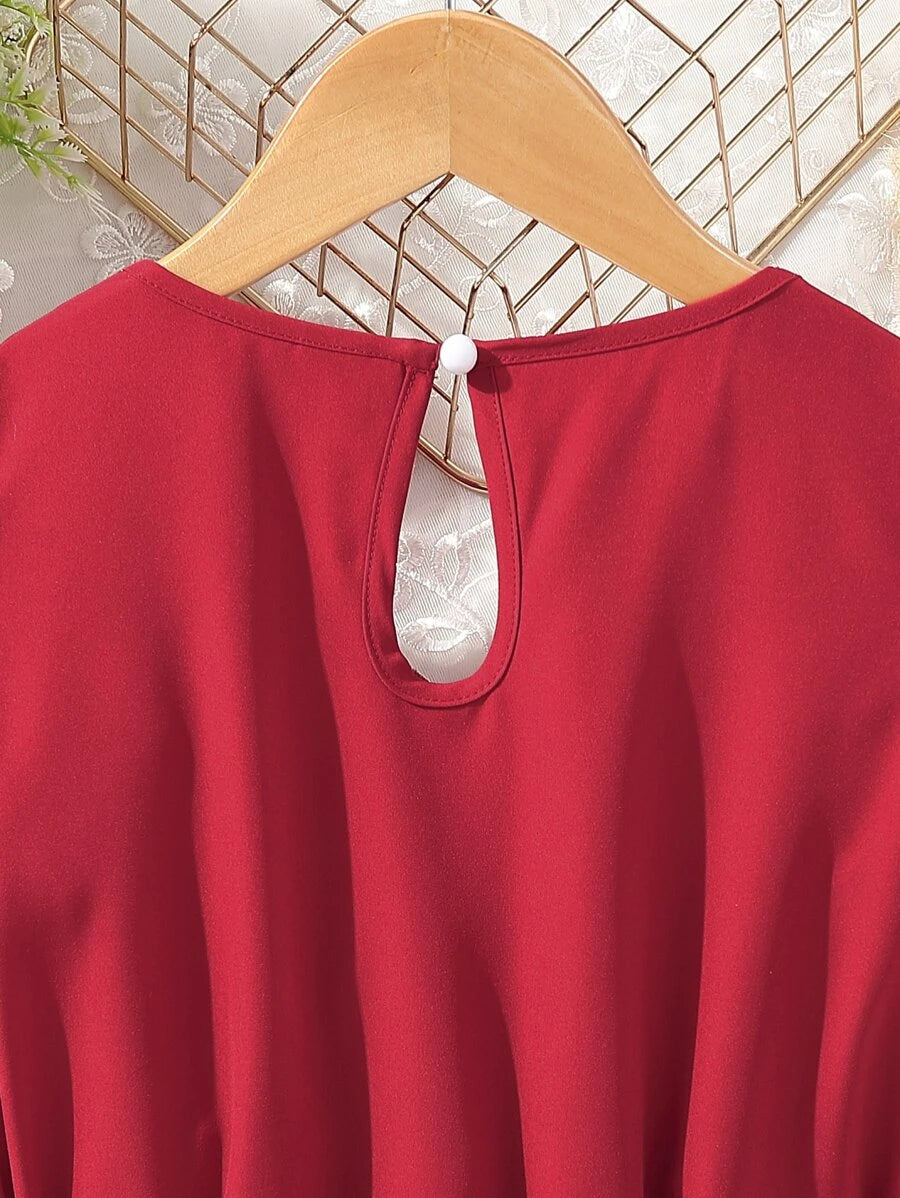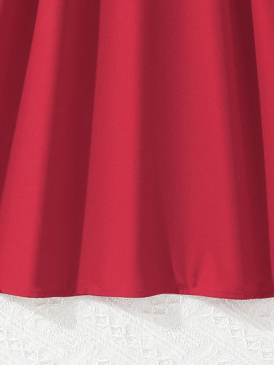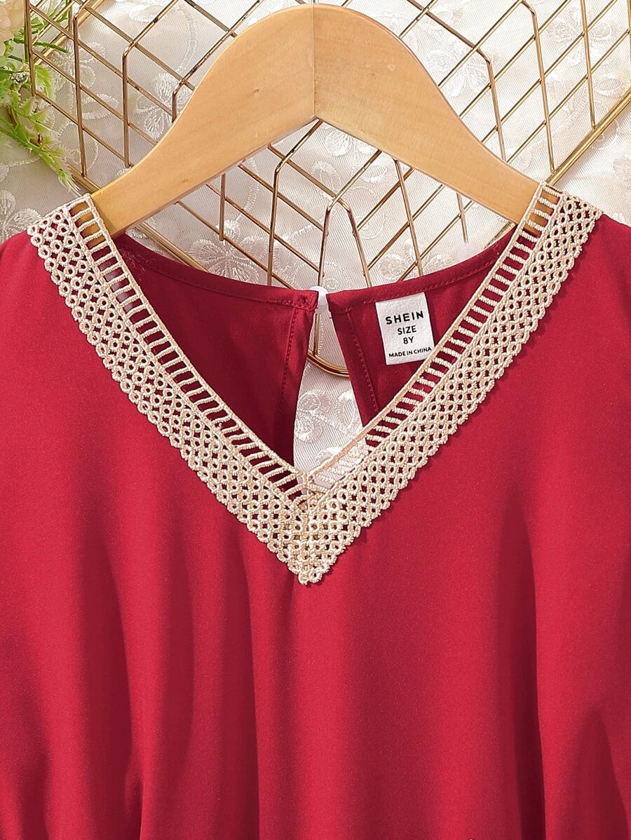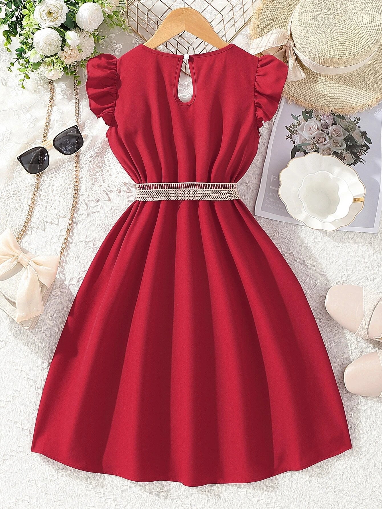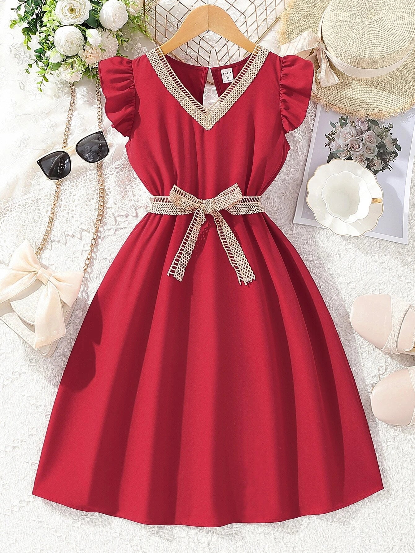 SHEIN Kids EVRYDAY فستان للفتيات بأكمام مزينة بحواف متباينة وحزام