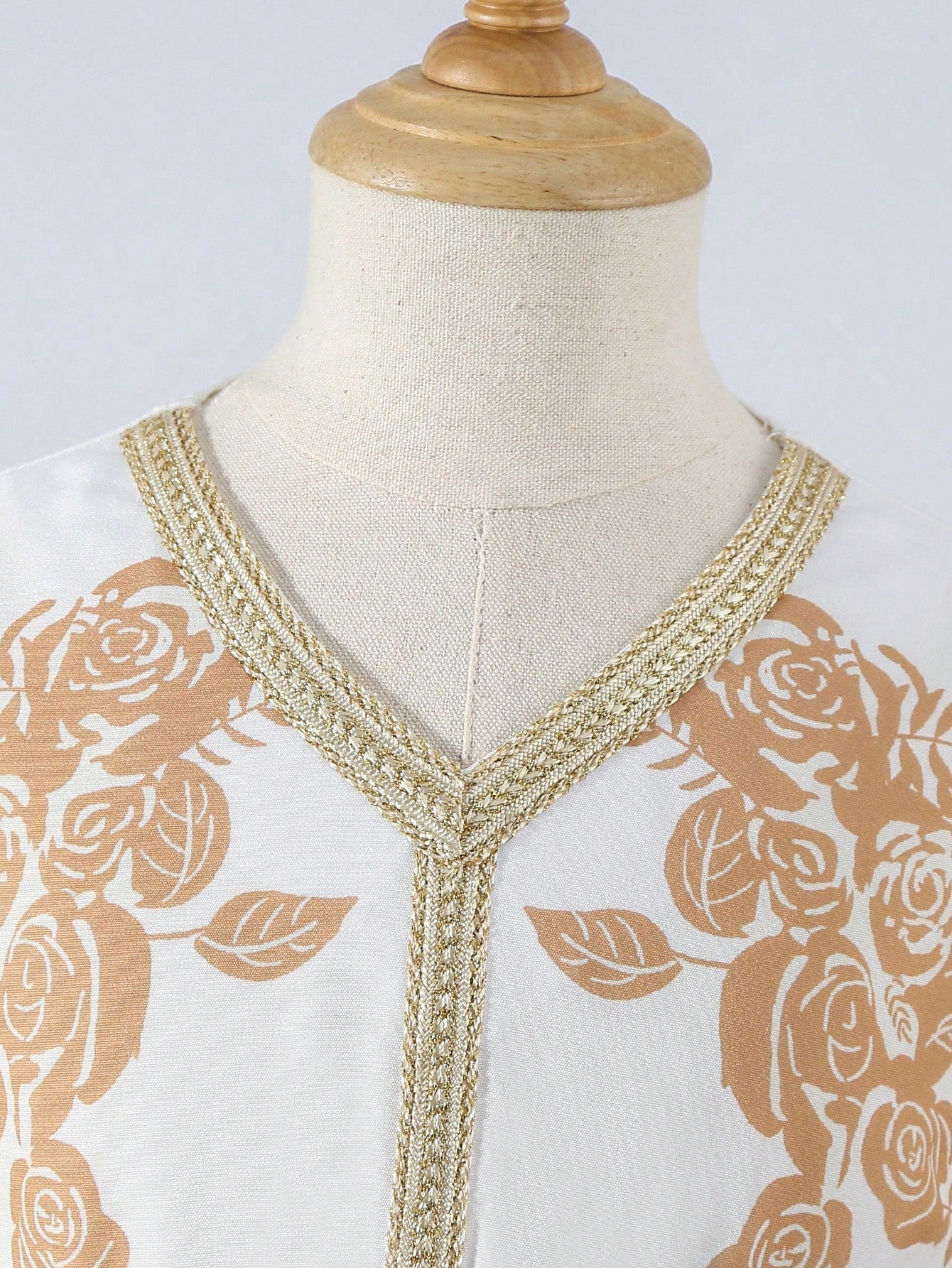 SHEIN Kids FANZEY فستان قصير الأكمام بطبعات زهور مع وصلات مختلفة الأقمشة لفتاة ص